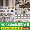 家装 室内单体茶几书柜酒柜衣柜桌椅床灯具家具摆件门沙发SU模型库