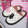 休闲居家卡通月子鞋 细细条 女包头防滑秋冬季 波点小猫棉拖鞋 个性
