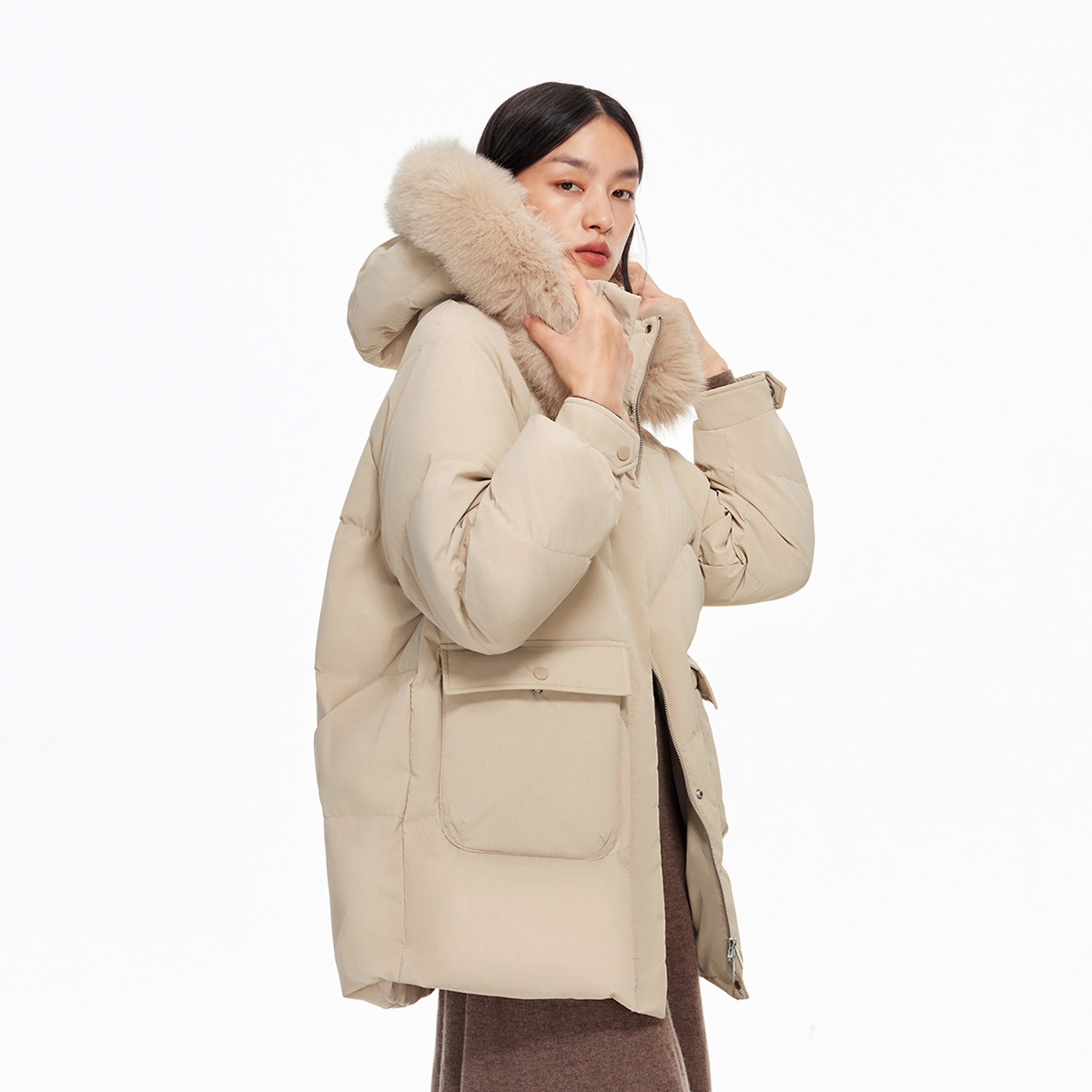 90白鸭绒毛领轻羽外套325412007 新款 Vero Moda羽绒服女2025冬季