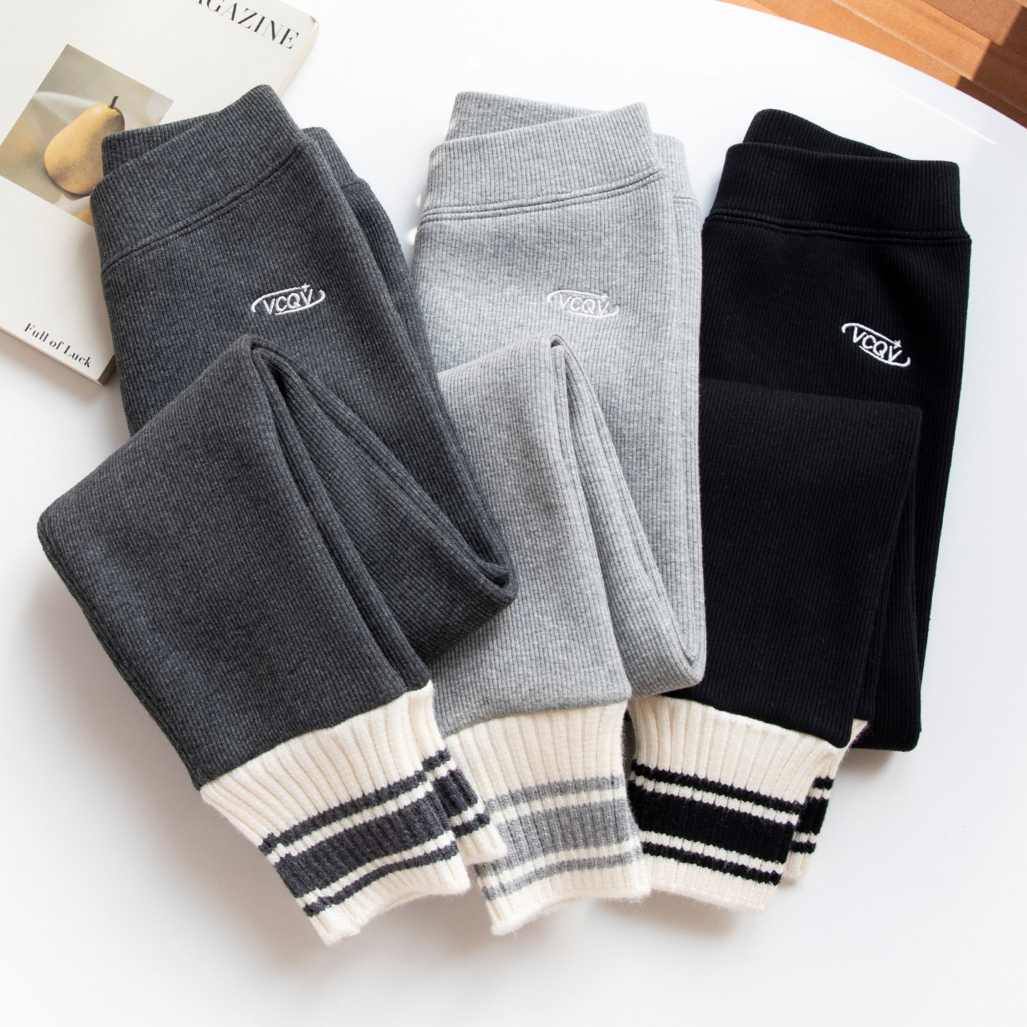 儿童一体绒灰色长裤 外穿女宝宝加厚保暖棉裤 加绒秋冬季 女童打底裤