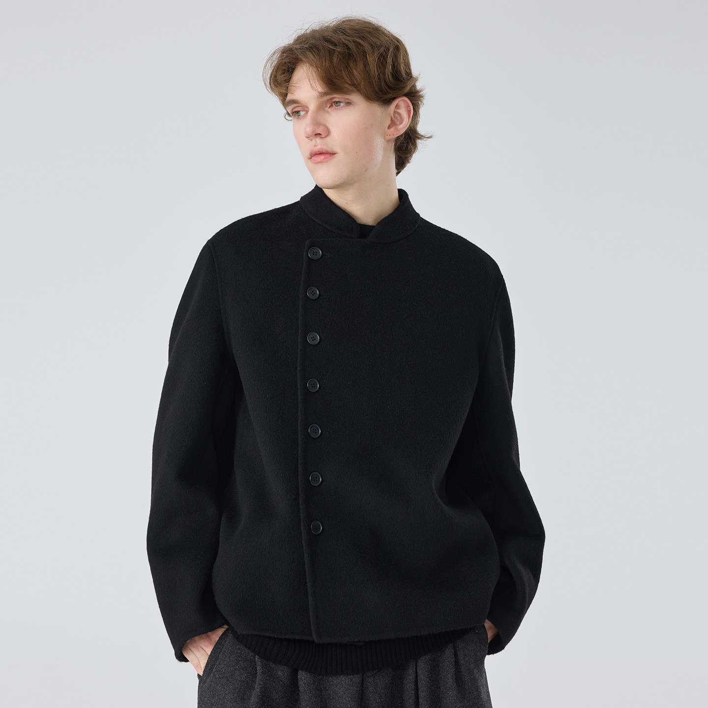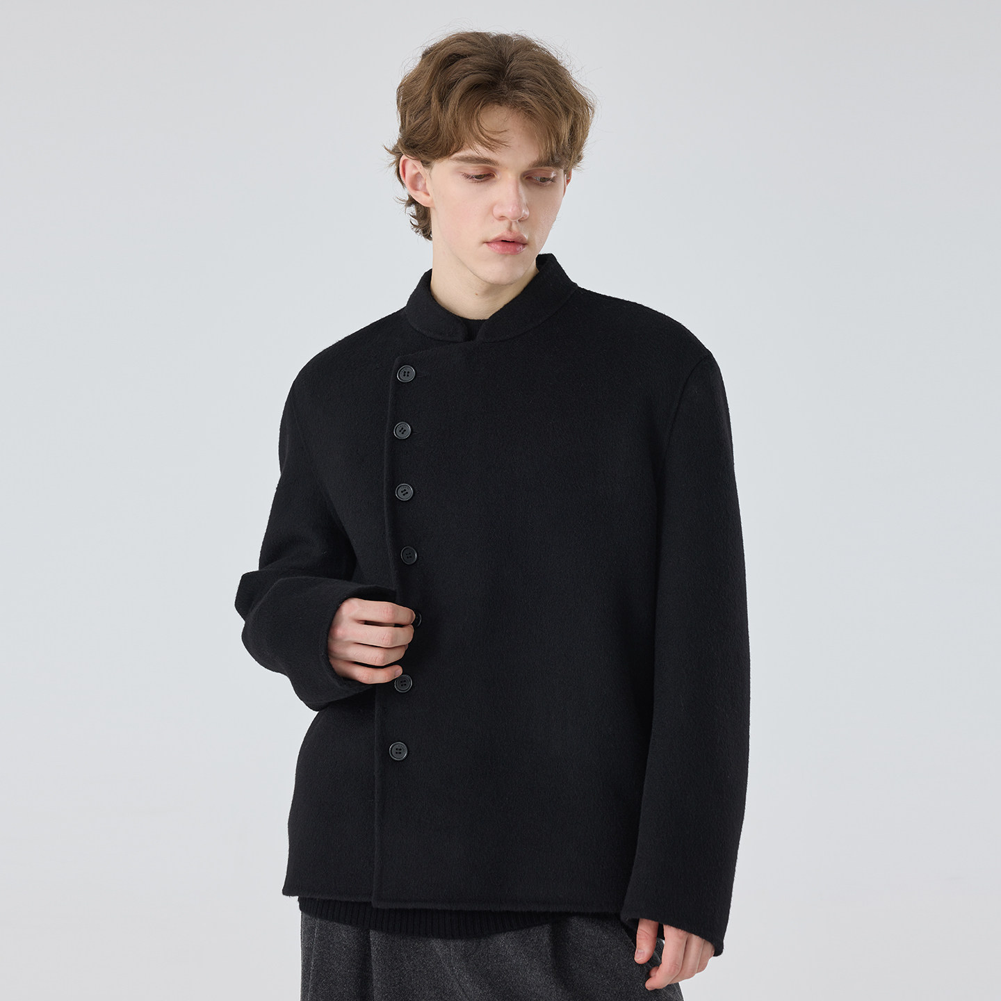 立领双面羊毛骆驼绒大衣外套休闲纯手工百搭上衣男 男士 冬季 新款