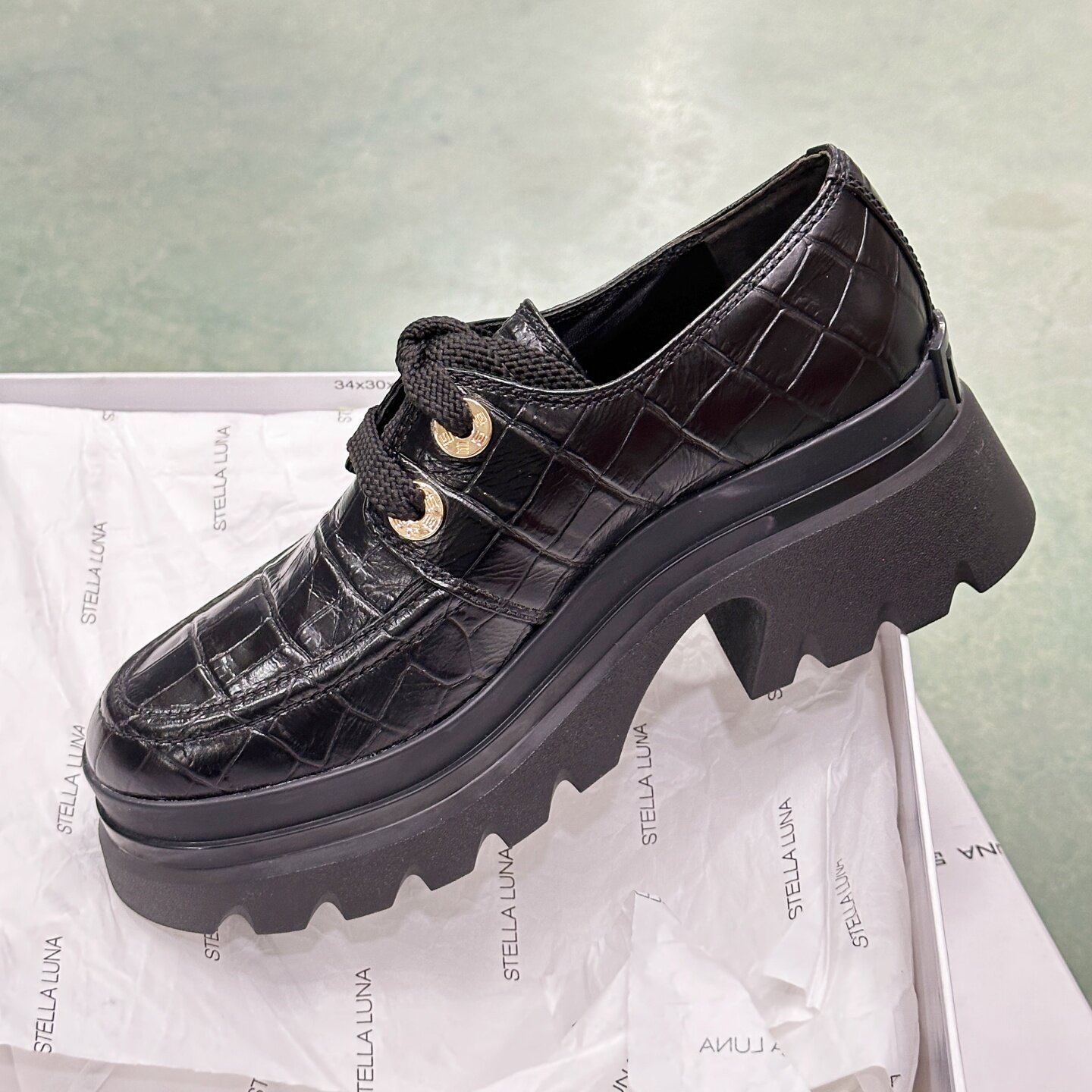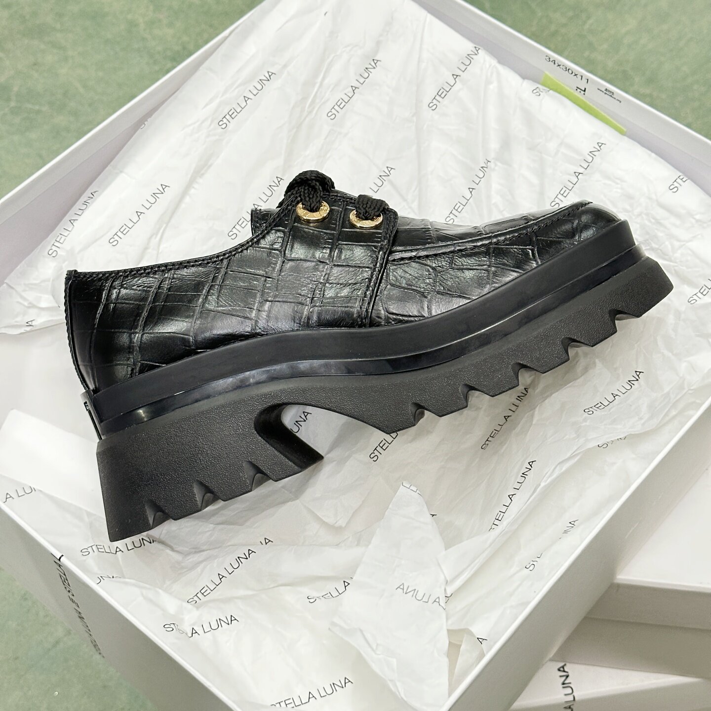 女SL122072 增高系带厚底德比鞋 露娜女鞋 鳄鱼纹厚英伦底圆头乐福鞋