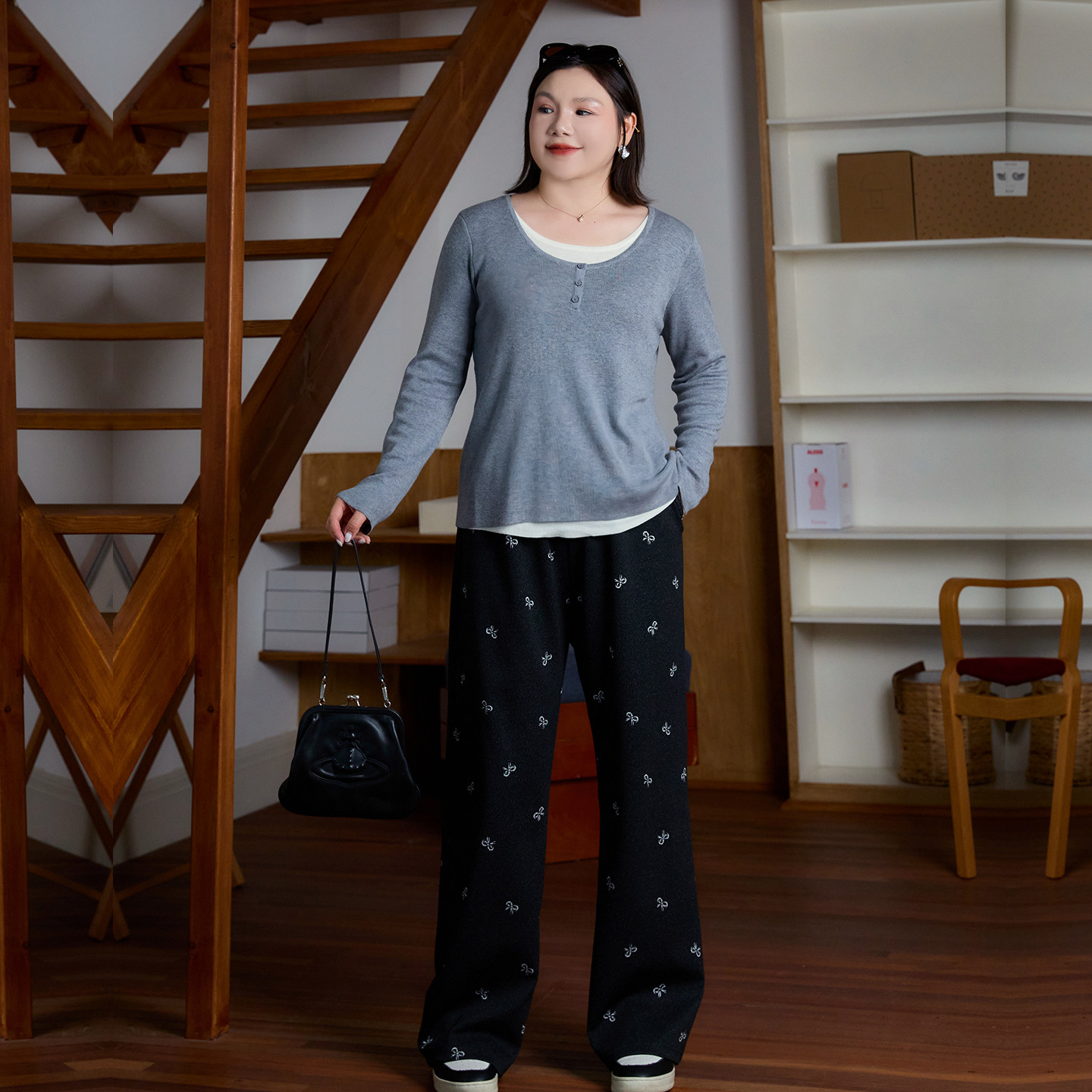 200斤胖mm宽松直筒休闲裤 高质感蝴蝶结针织裤 2025新款 女装 特大码
