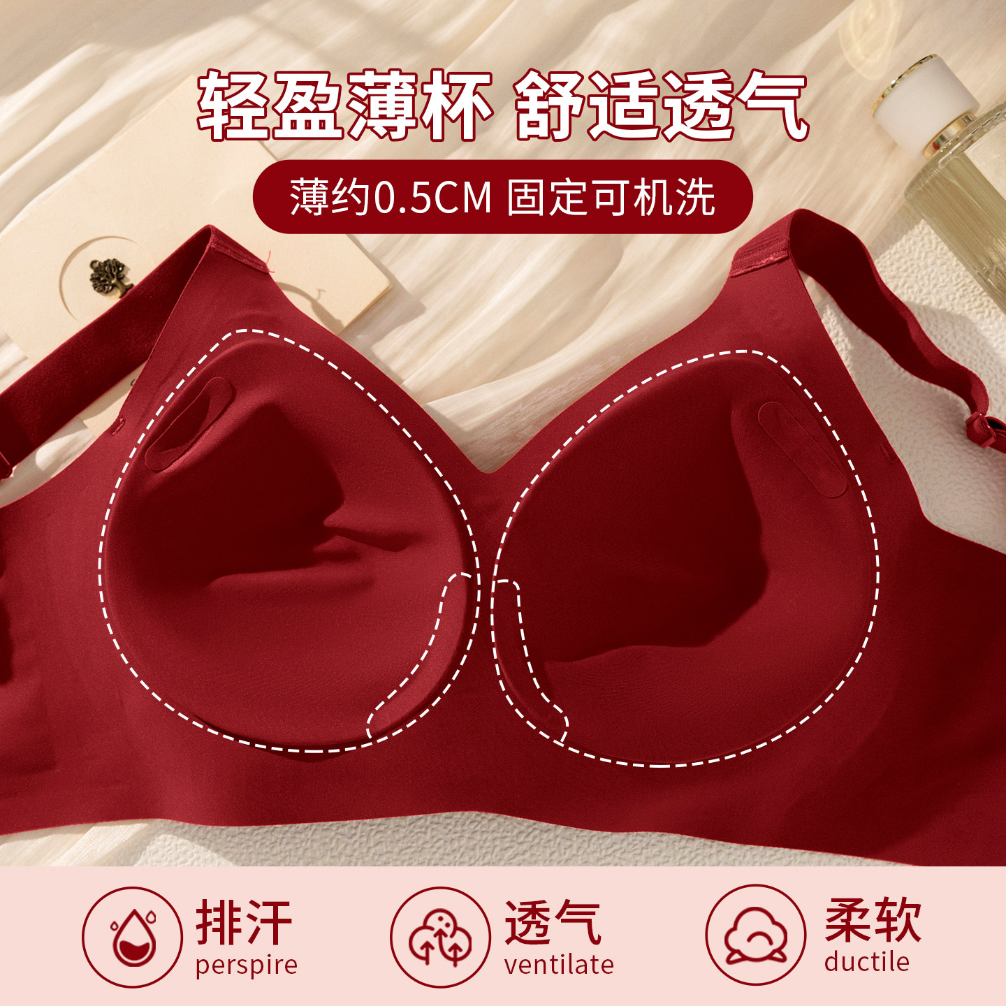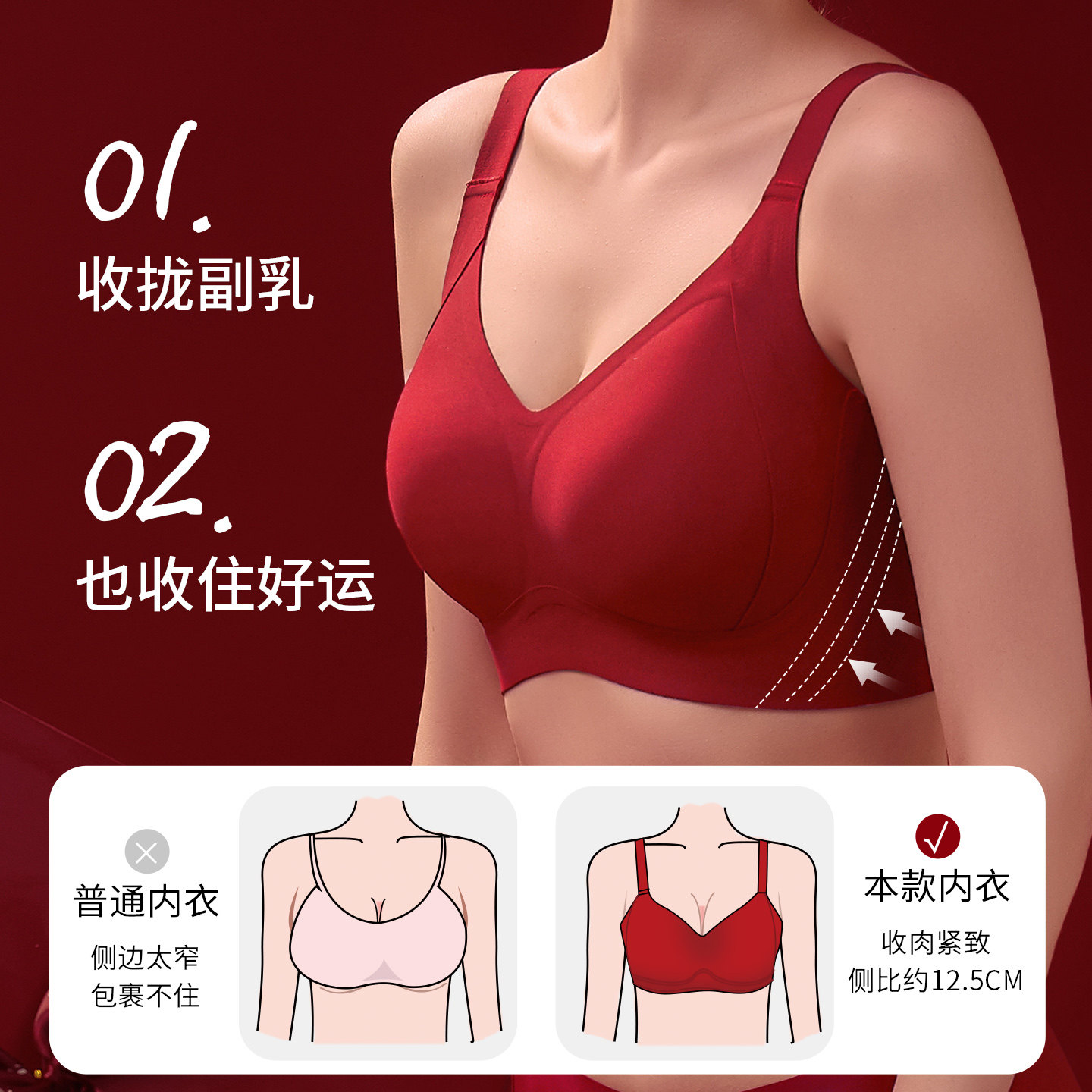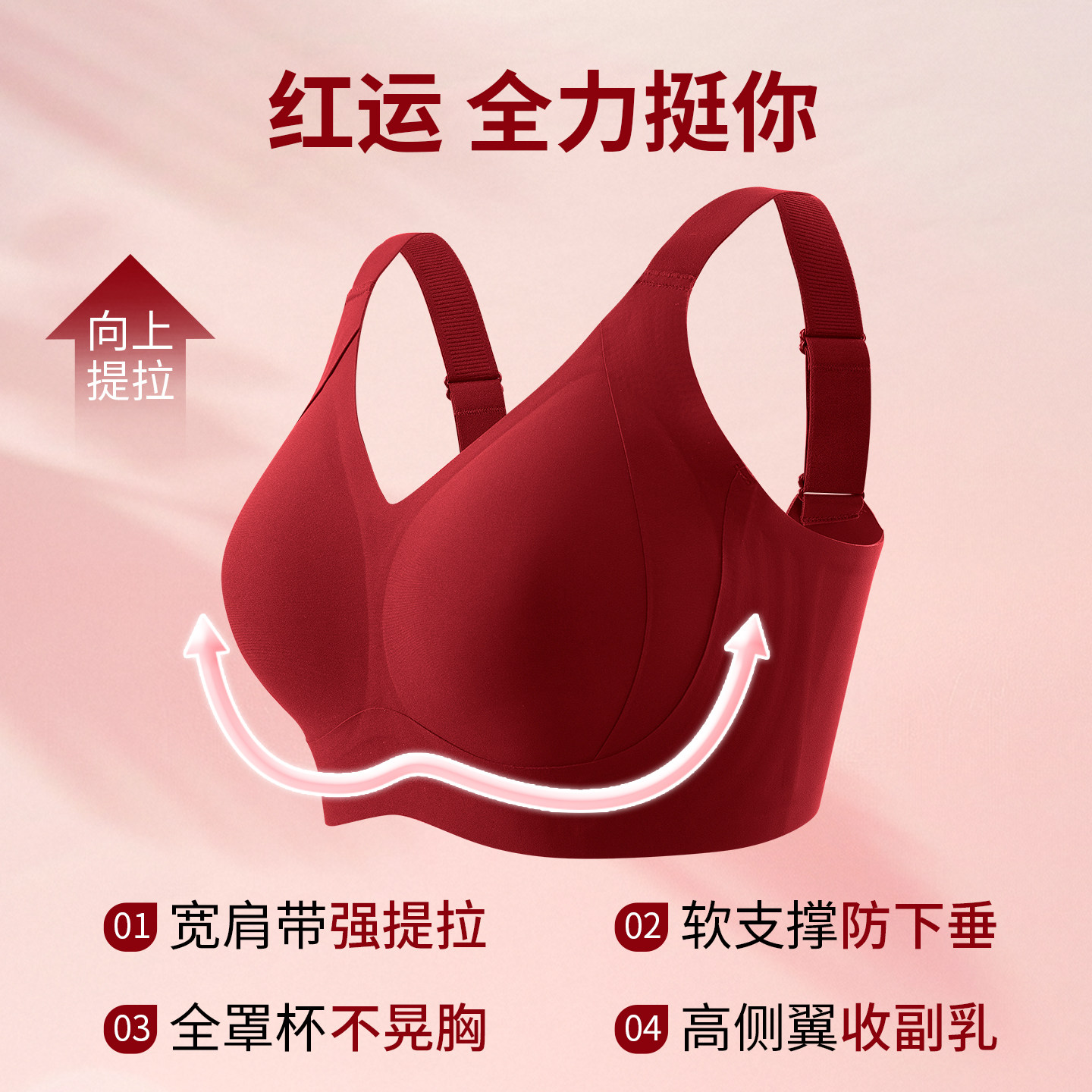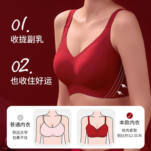 菇娘家本命年红色内衣套装 大胸显小聚拢无痕结婚文胸罩 女马年新款