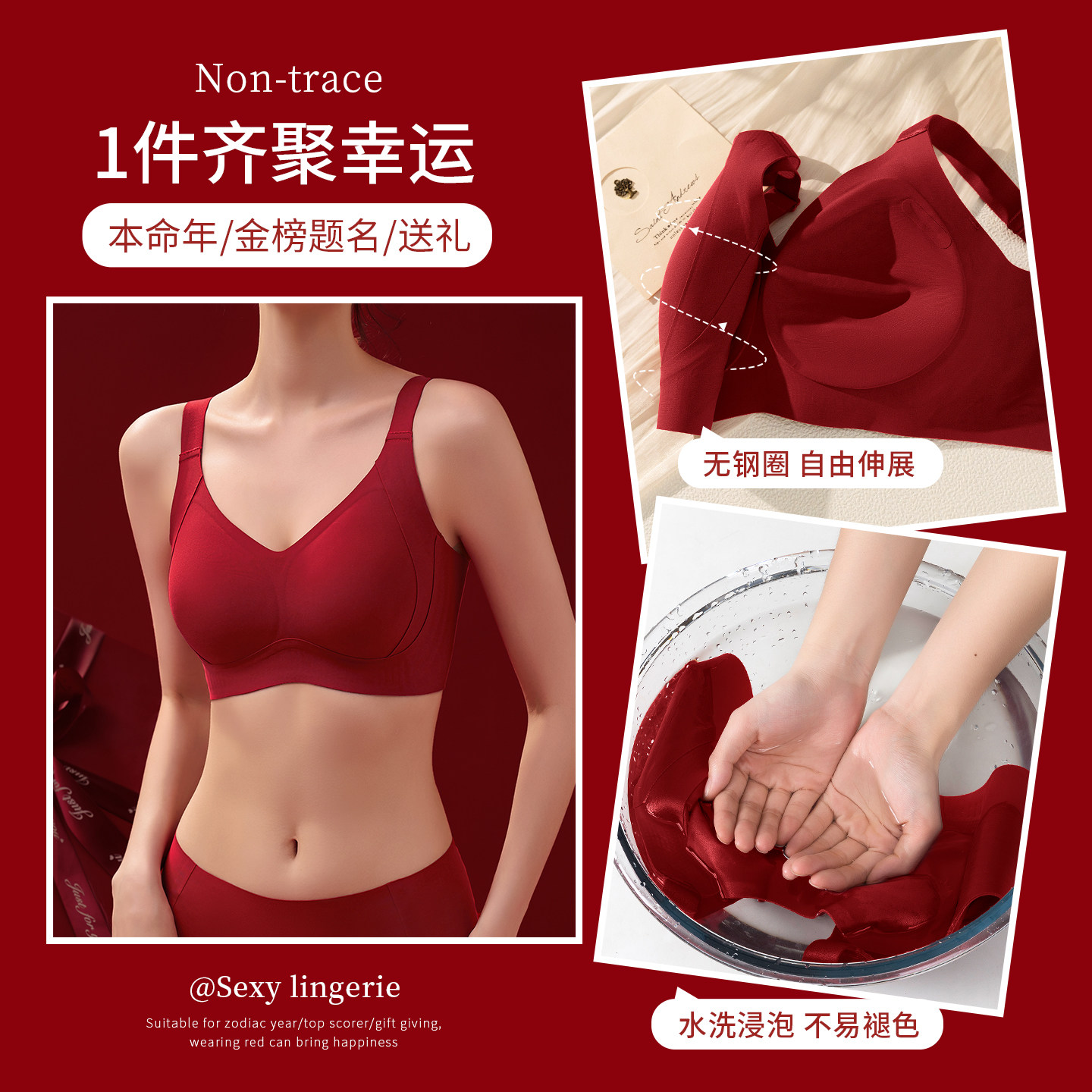 本命年内衣女红色蛇年转运小胸聚拢性感无钢圈结婚新娘文胸罩套装