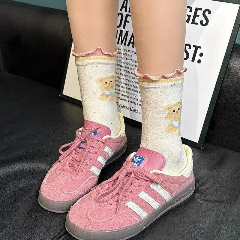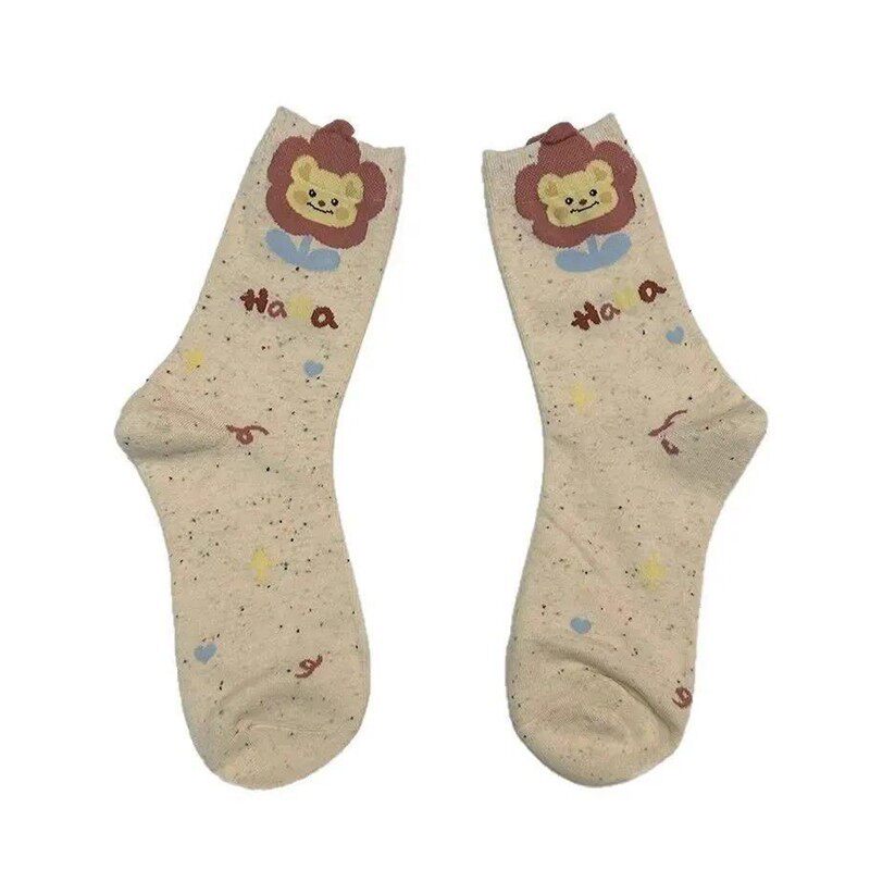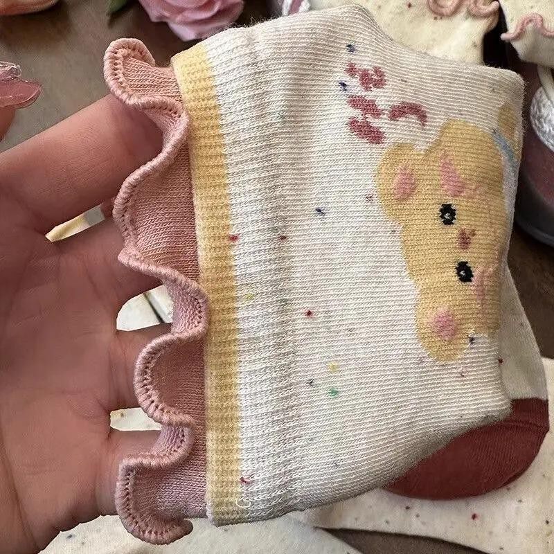 可爱卡通中筒袜女生木耳边小熊日系点子纱可爱学院风堆堆袜