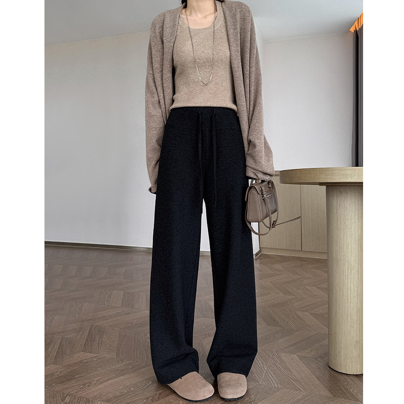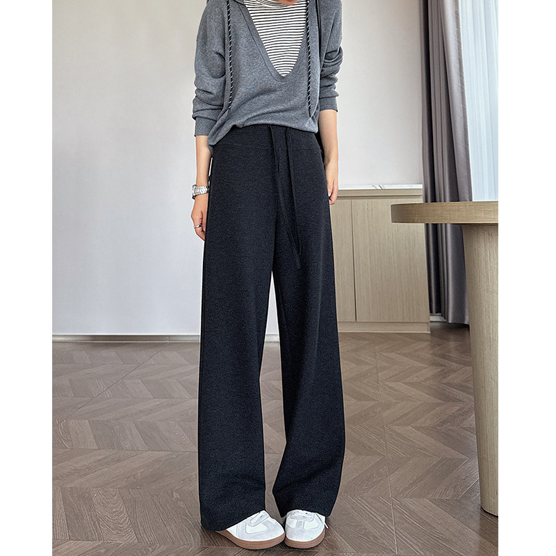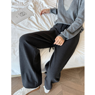 绵羊毛直筒云朵裤 灰色阔腿裤 女春秋加长高个子垂感慵懒软糯糯米裤