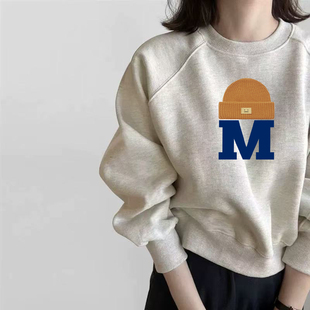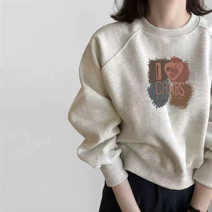 宽松显瘦加绒胖mm女装 秋冬新款 2025休闲百搭大码 卫衣大码 圆领长袖