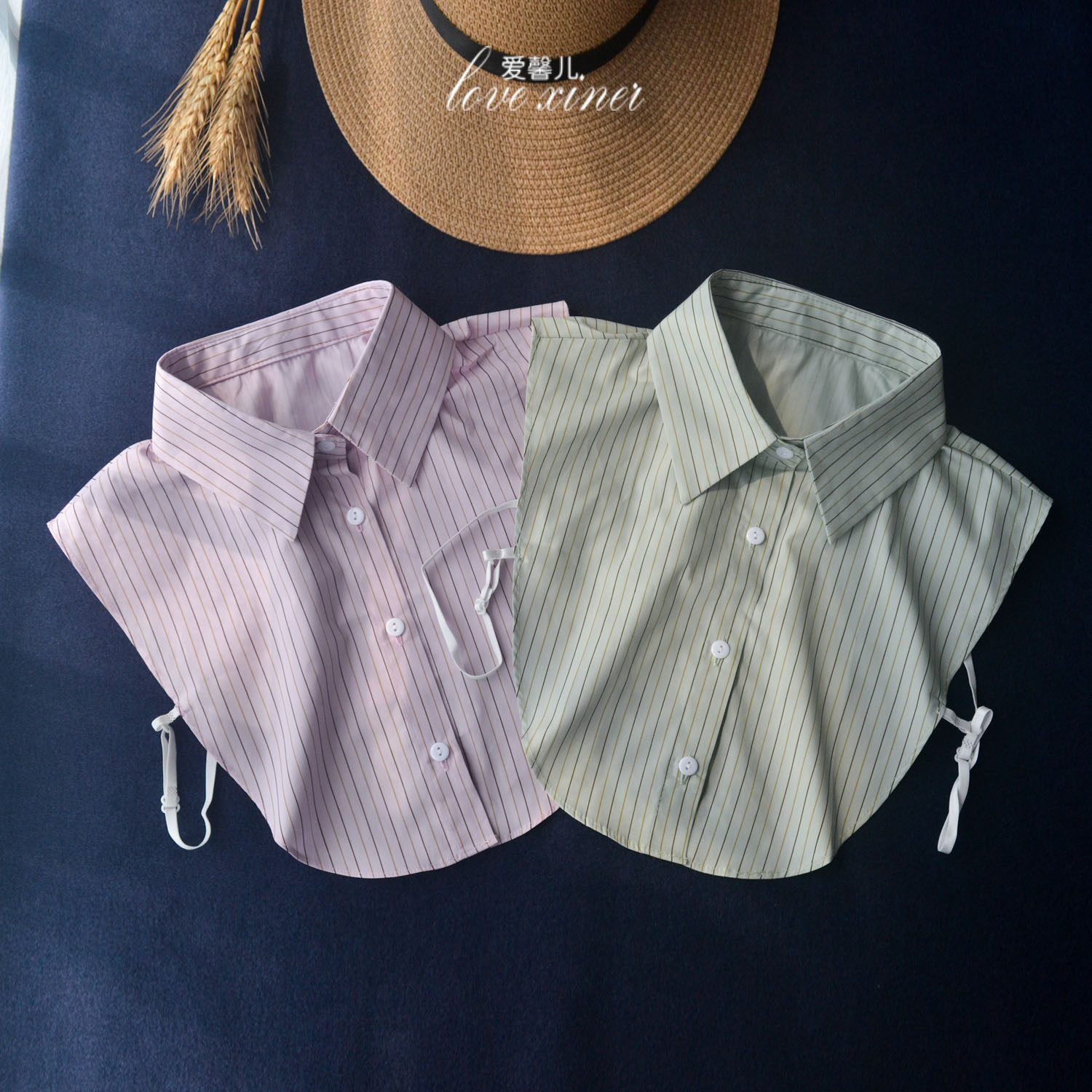 内搭装 爱馨儿 女士打底假衬衫 职业装 饰 纯棉条纹假领2025春秋新款