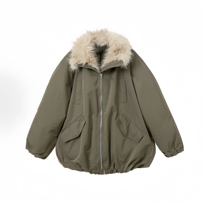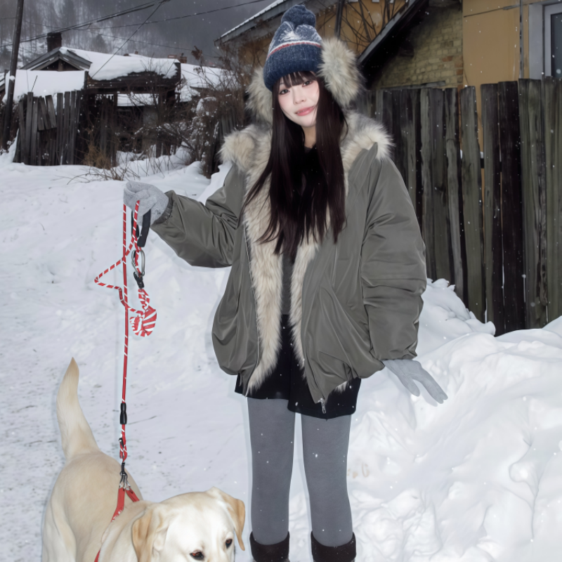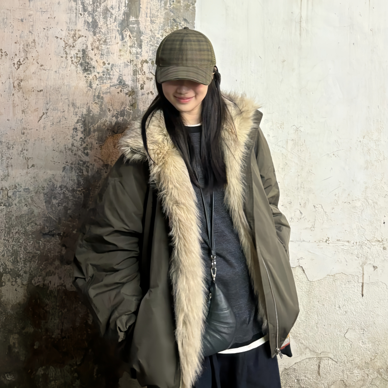 复古加厚棉衣外套 毛绒拼接巴恩风花苞派克棉服女美式 2025冬季 新款
