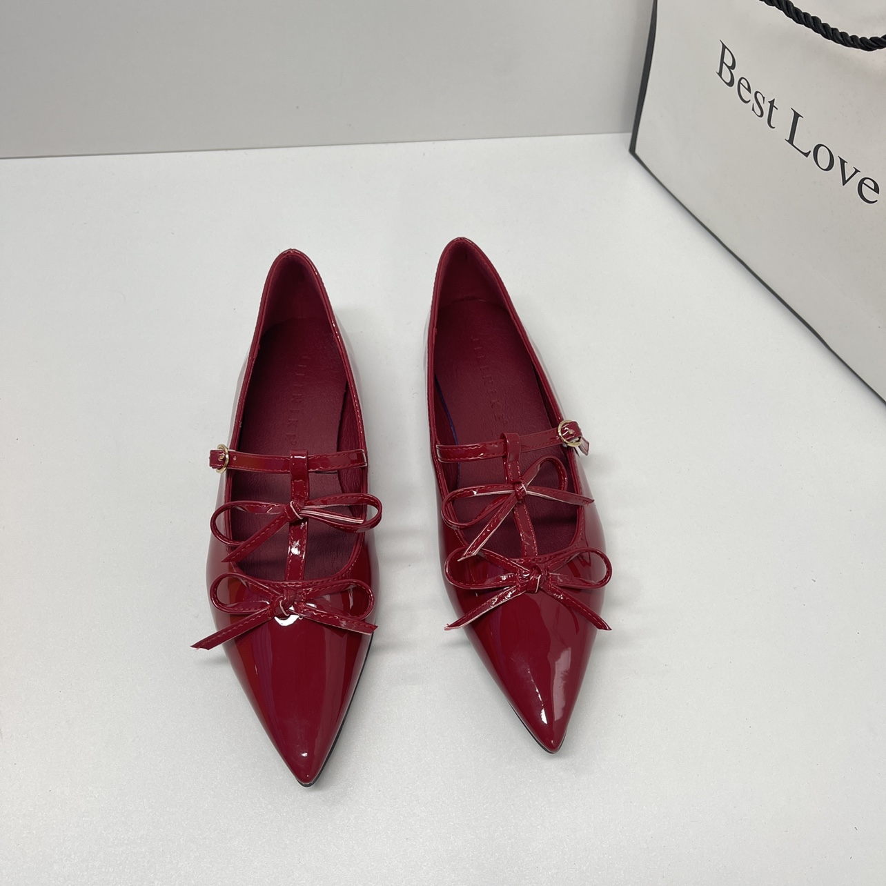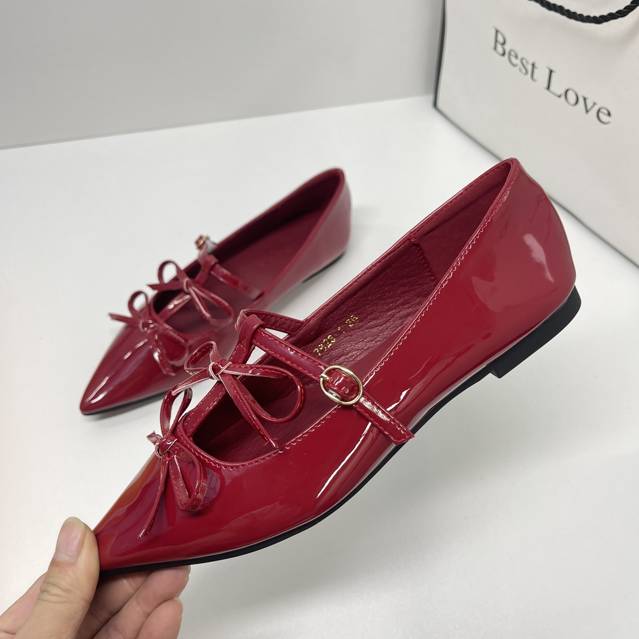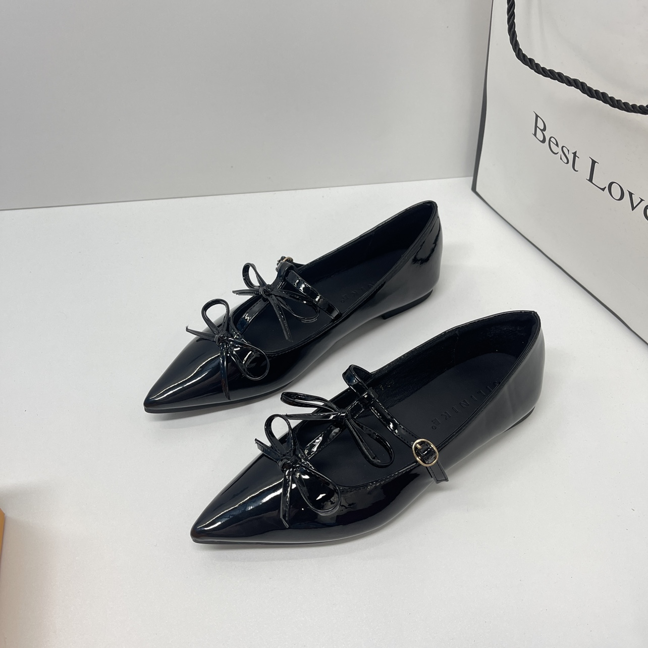 新款 女鞋 女士温柔蝴蝶结浅口单鞋 淑女平底单鞋 法式 热风2025年夏季
