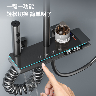 欧琳花洒淋浴套装 家用琴键精铜主体大顶喷枪灰色简易普通花洒6303
