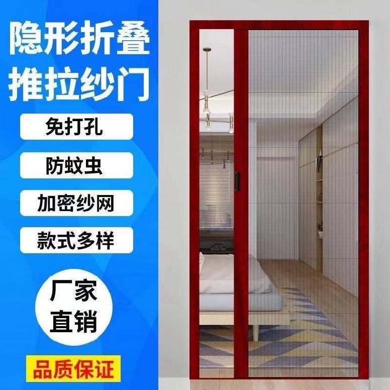 推拉隐有门式 型折叠纱门蚊平开框防网门窗防蚊纱门I玄关r自粘纱窗