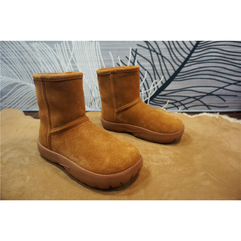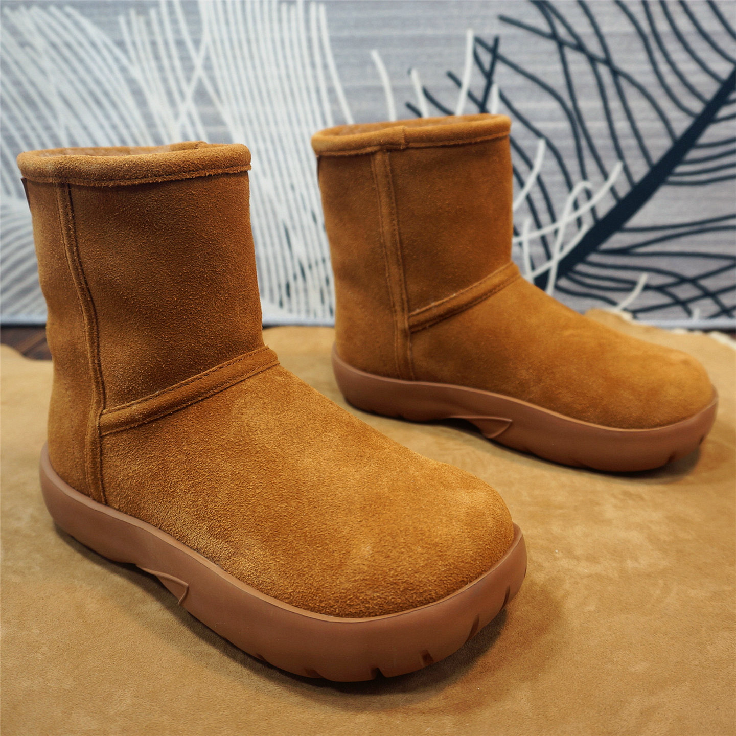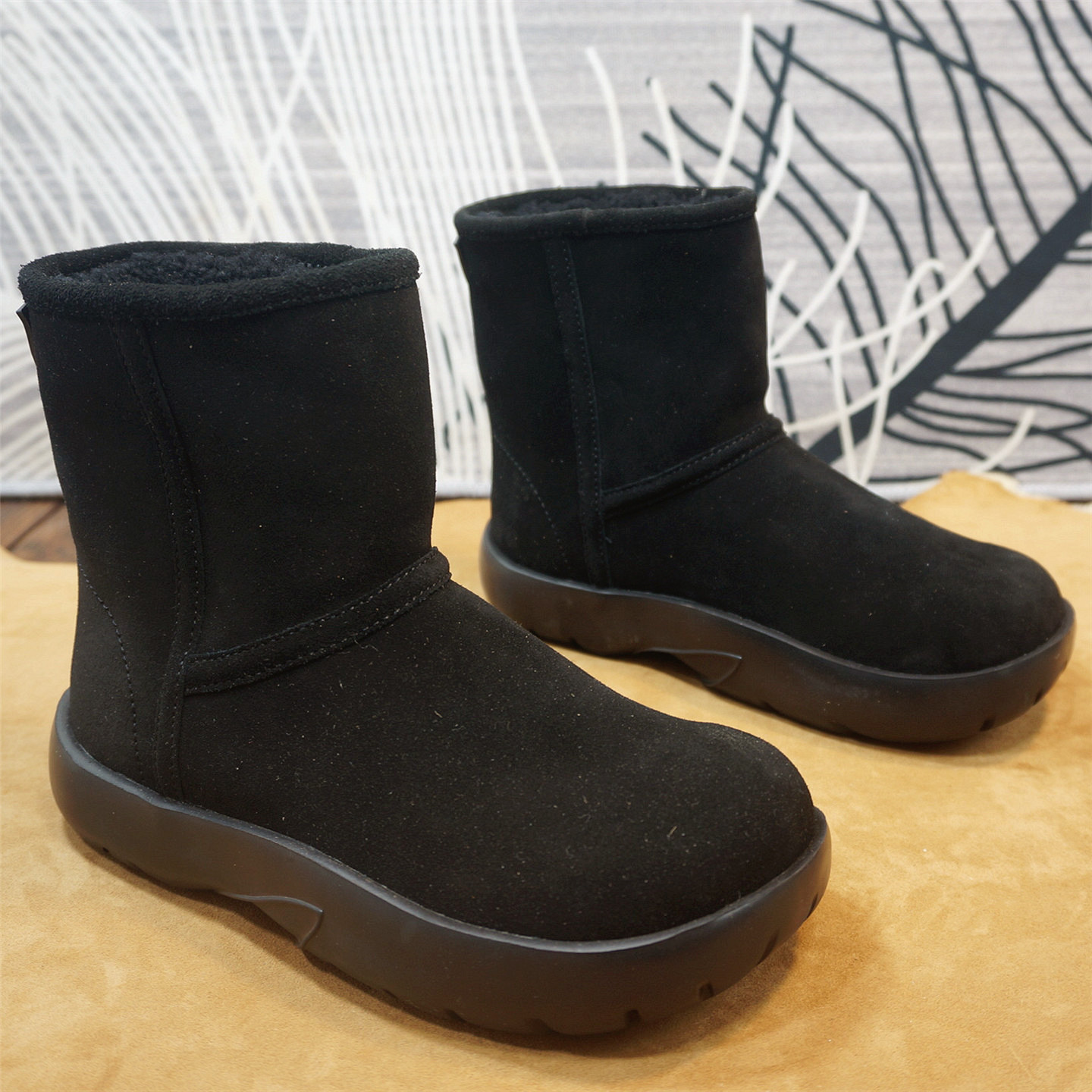 套筒橡胶底保暖靴27 冬季 中筒靴 真皮牛皮羊毛女士雪地靴 13B 新款