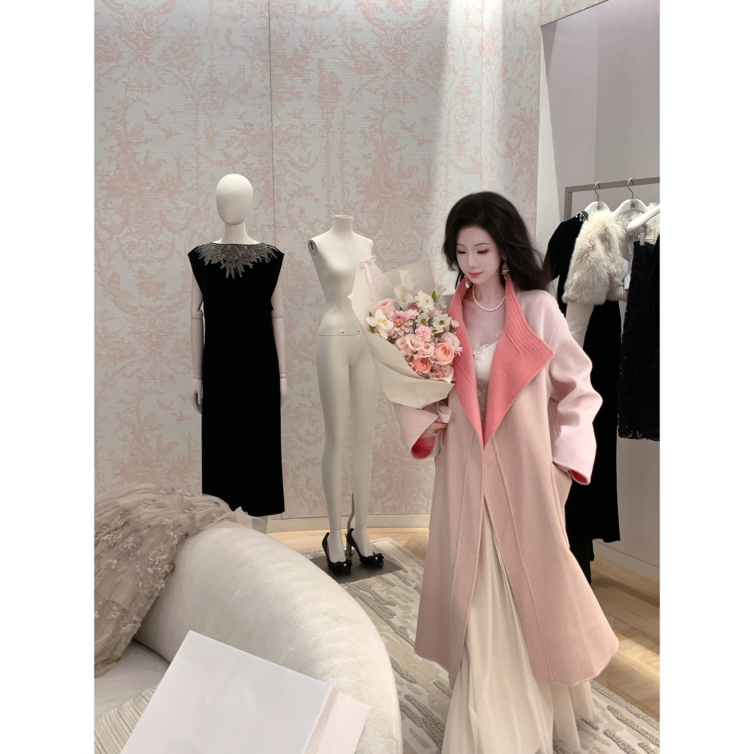 西装 过膝双面羊绒外套 领毛呢子风衣 中长款 纯羊毛双面呢大衣男士