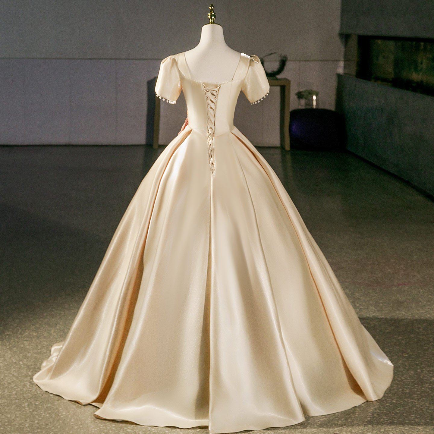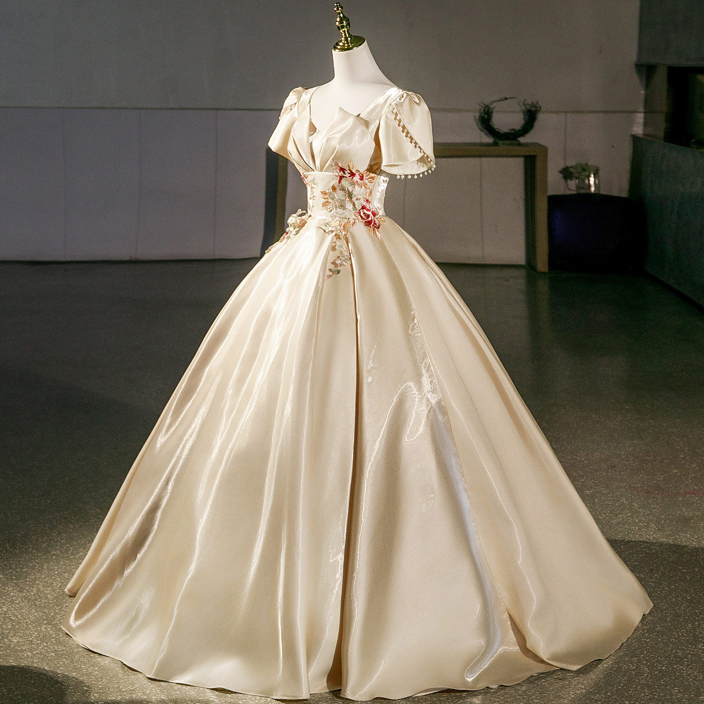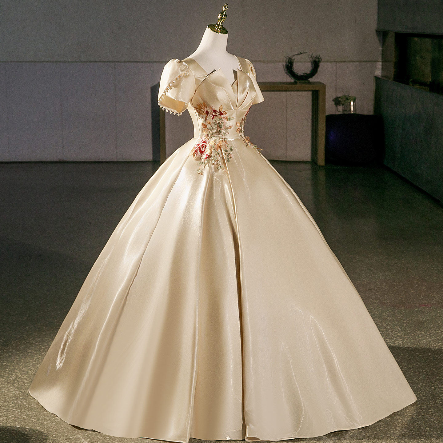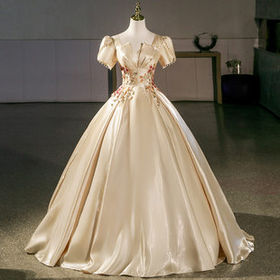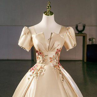 新款 香槟色高端生日宴会晚礼服钢琴独唱成人主持艺考蓬蓬裙演出服