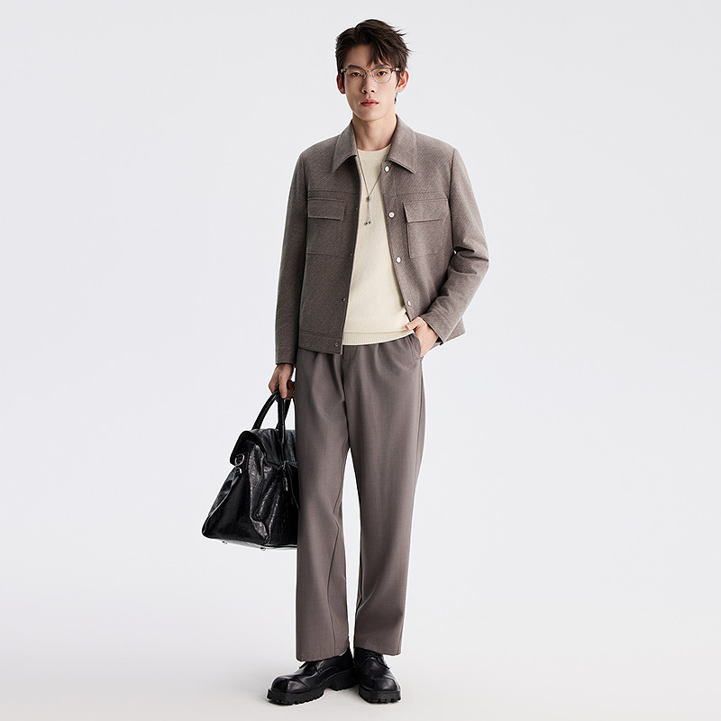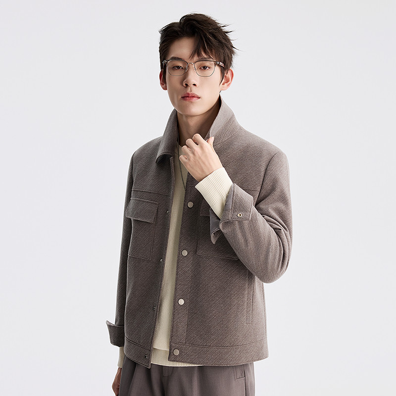 西装 过膝双面羊绒外套 领毛呢子风衣 中长款 纯羊毛双面呢大衣男士