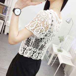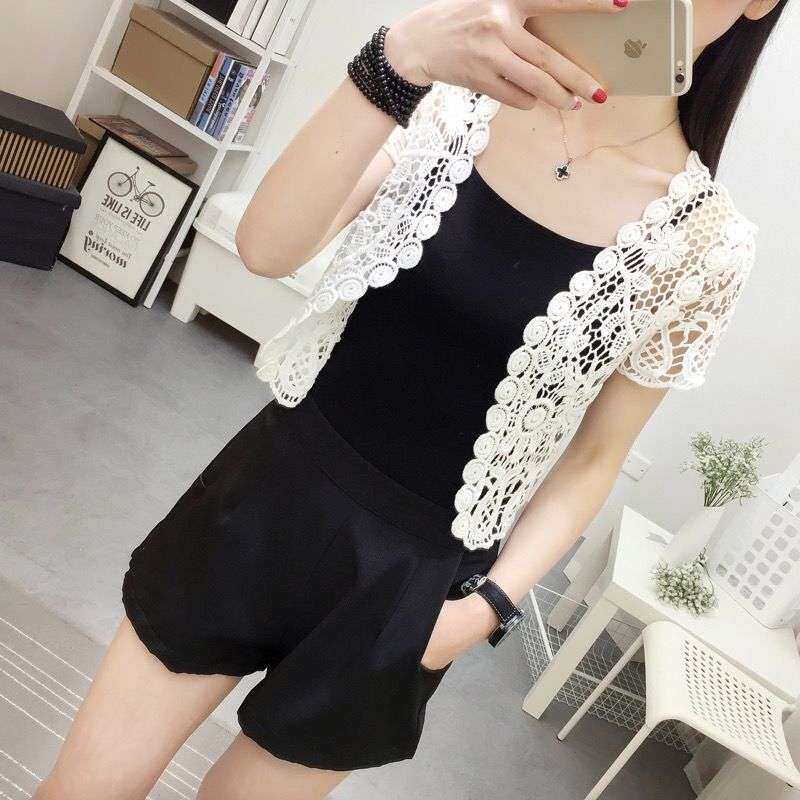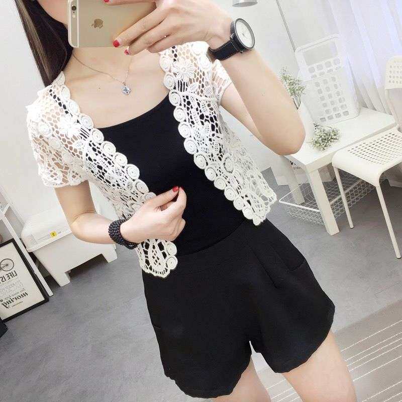 新款 女时尚 外搭小披肩韩版 坎肩蕾丝开衫 短外套防晒衣 镂空短袖 夏季