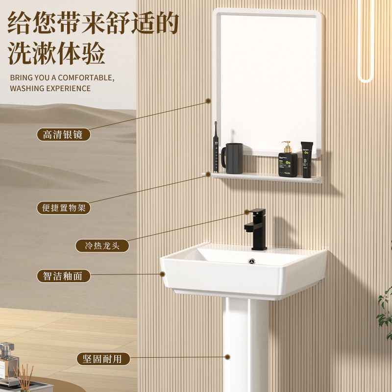 立柱盆陶瓷家用洗手盆小户型卫生间落地式 洗脸盆一体阳台洗面池盆