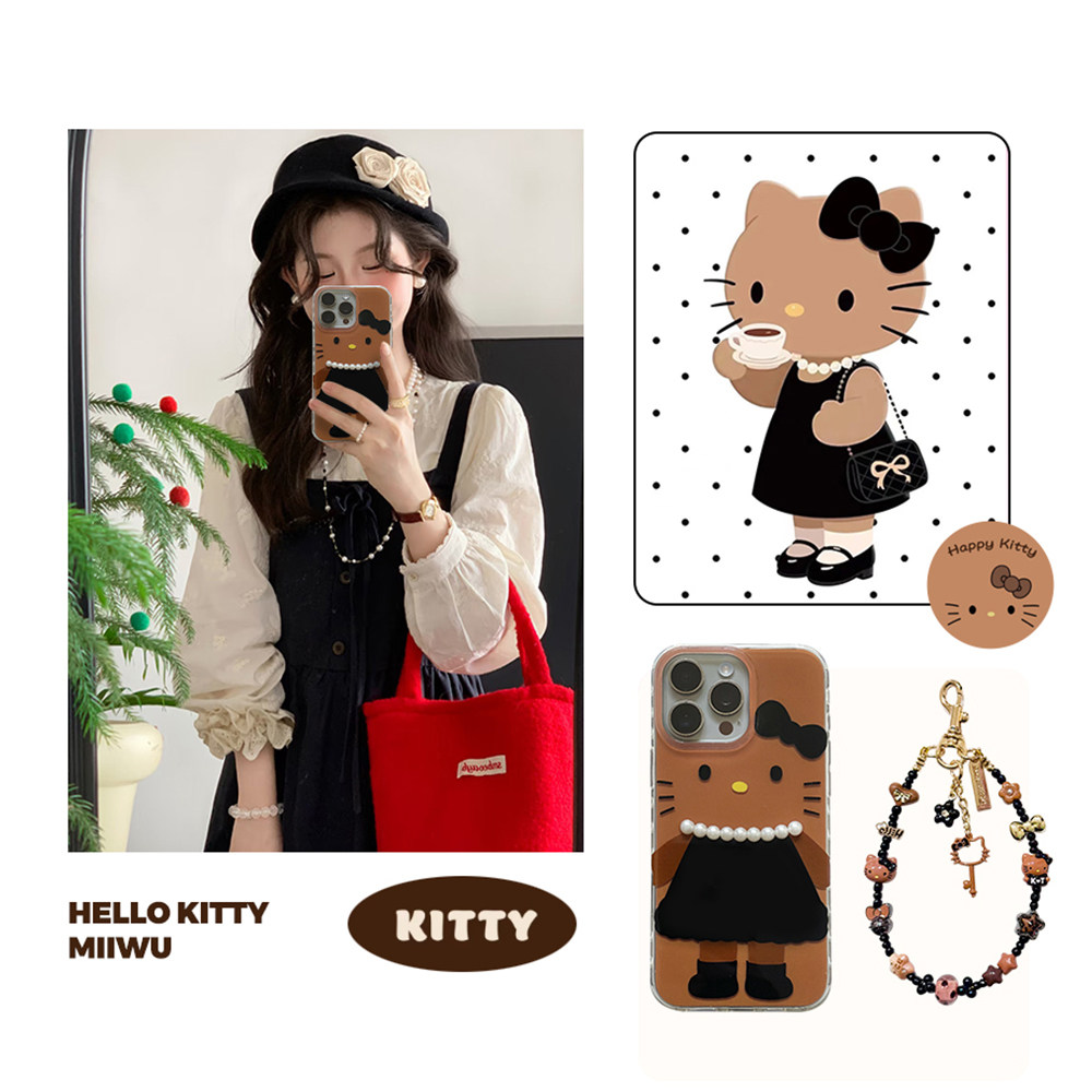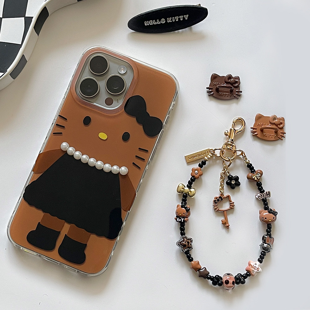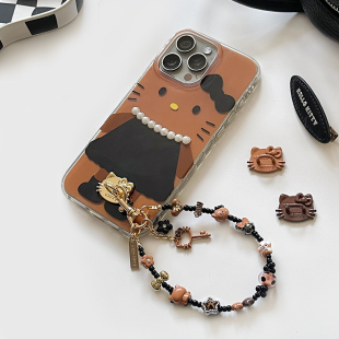 咖皮小黑裙珍珠项链kitty套装 手机壳iphone17promax适用苹果系列16手机保护套 手机壳防摔手机壳挂绳套装