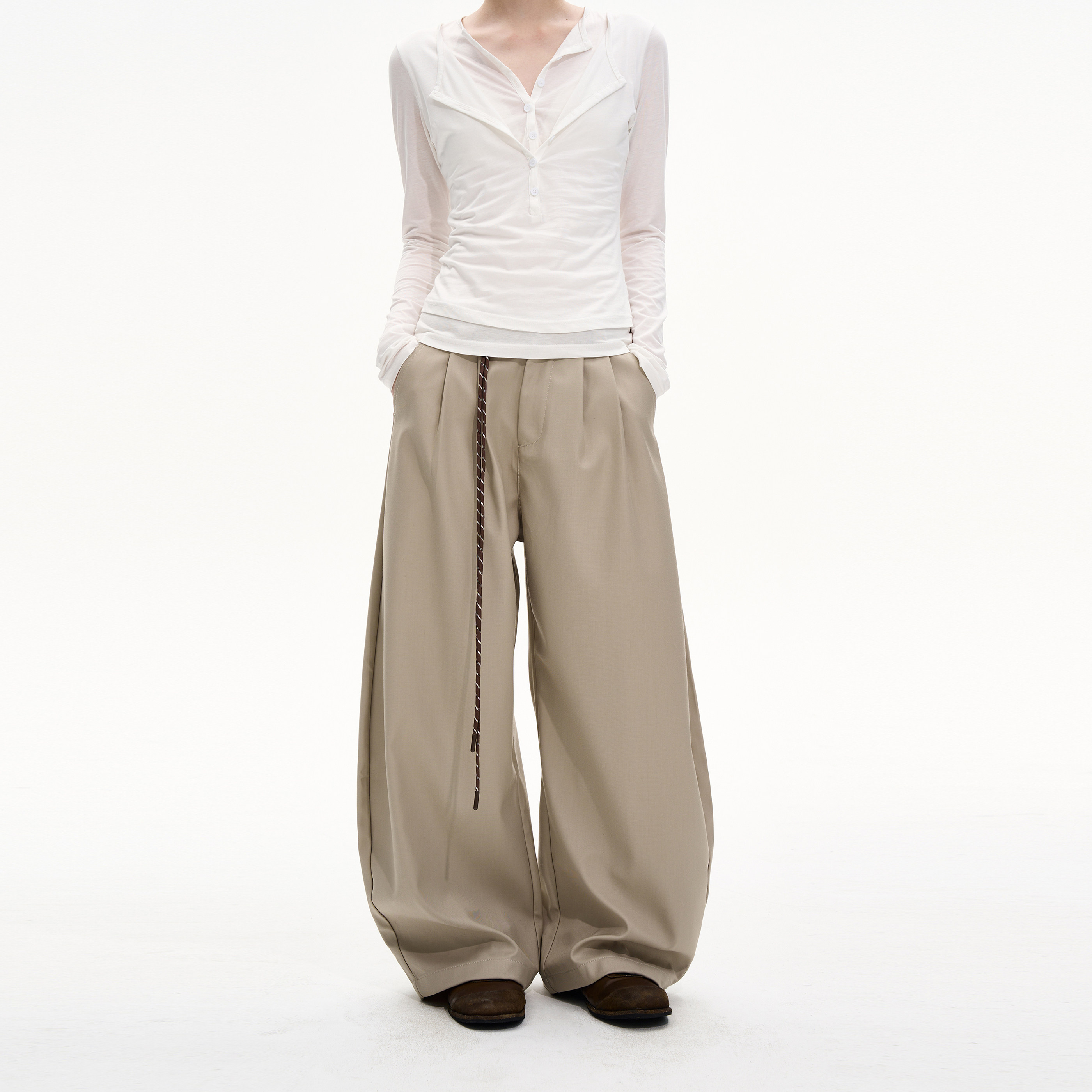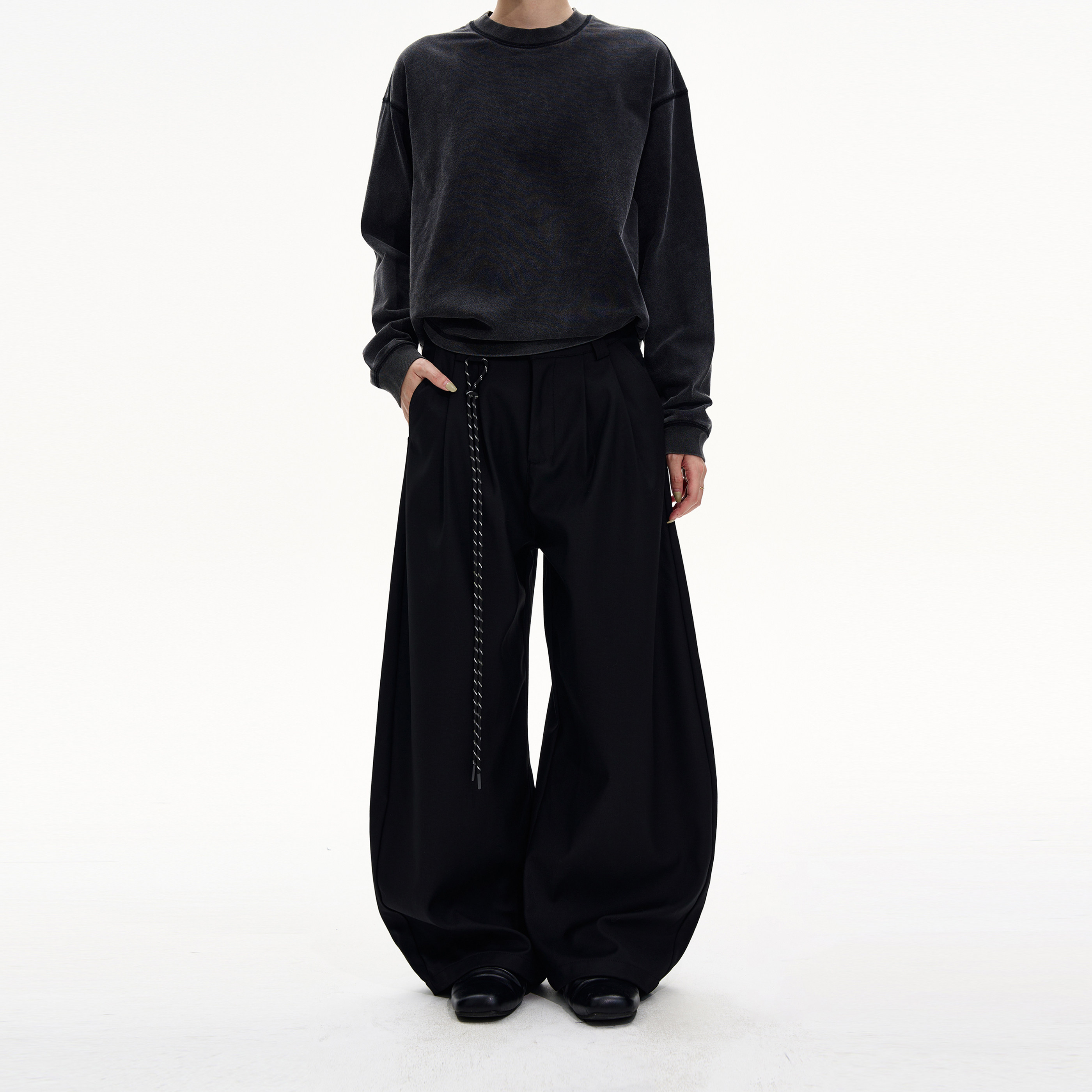 男女宽松阔腿百搭垂感休闲裤 MADWITCH美式 复古褶皱高级感弯刀西裤