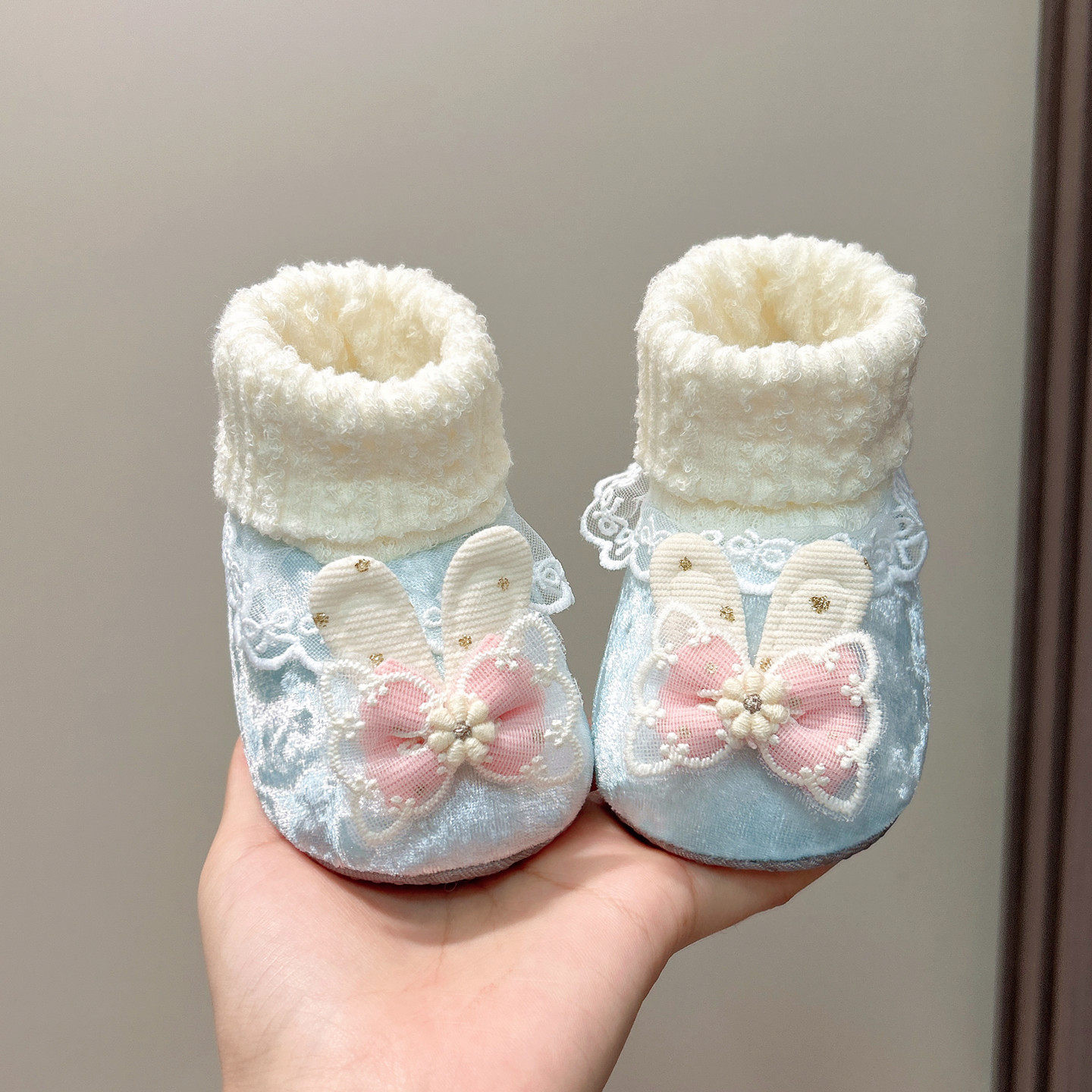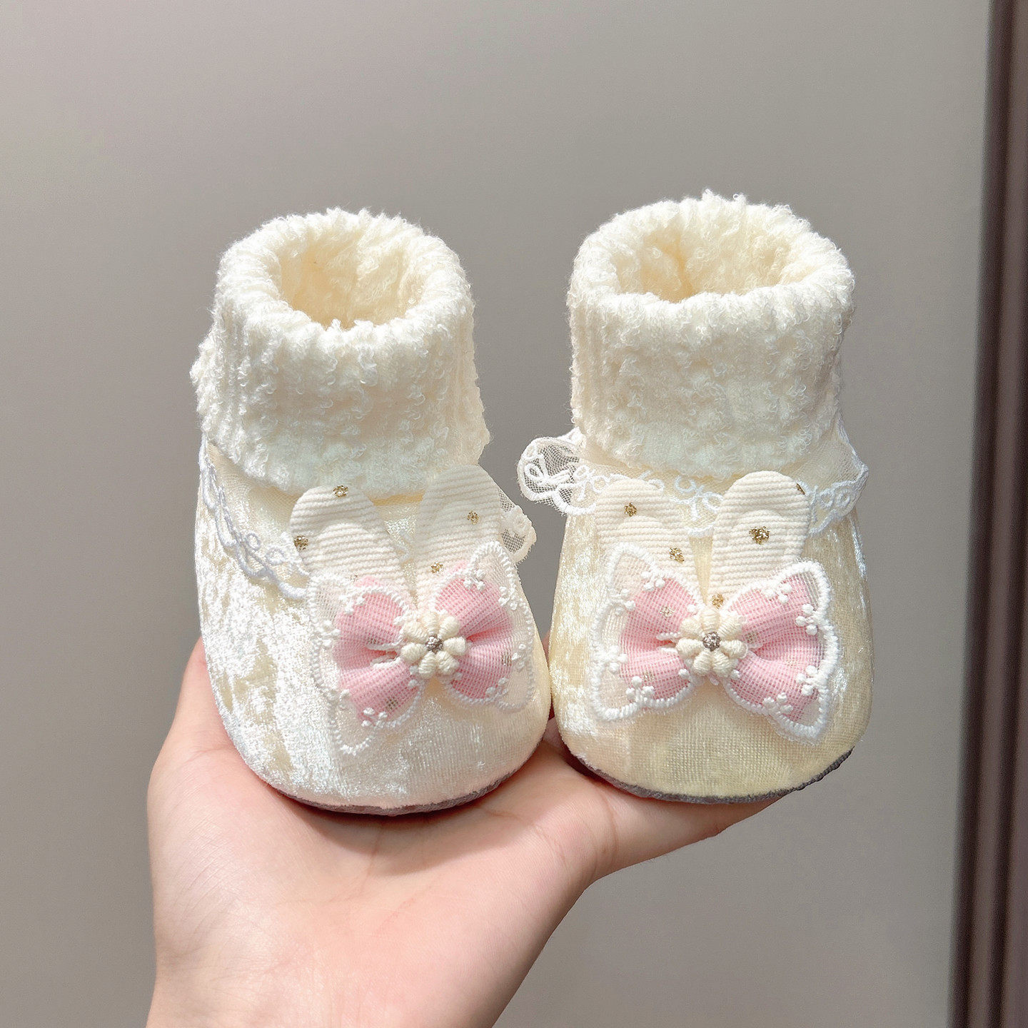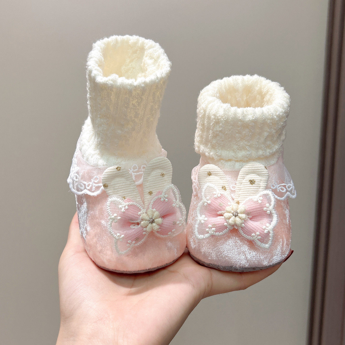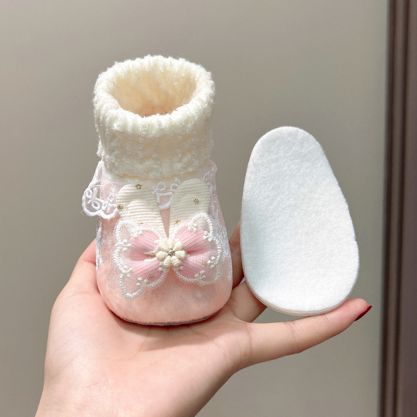 加绒保暖防掉鞋 婴儿地板袜鞋 0到6月冬季 女宝宝公主风软底鞋 春秋款