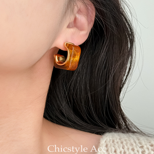 金色耳环女2025新款 复古港风高级感气质耳圈小众设计金属耳饰 爆款