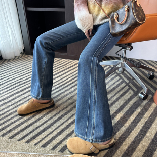 长裤 解构漫画腿 春深色弹力修身 女2026新款 复古高腰微喇牛仔裤