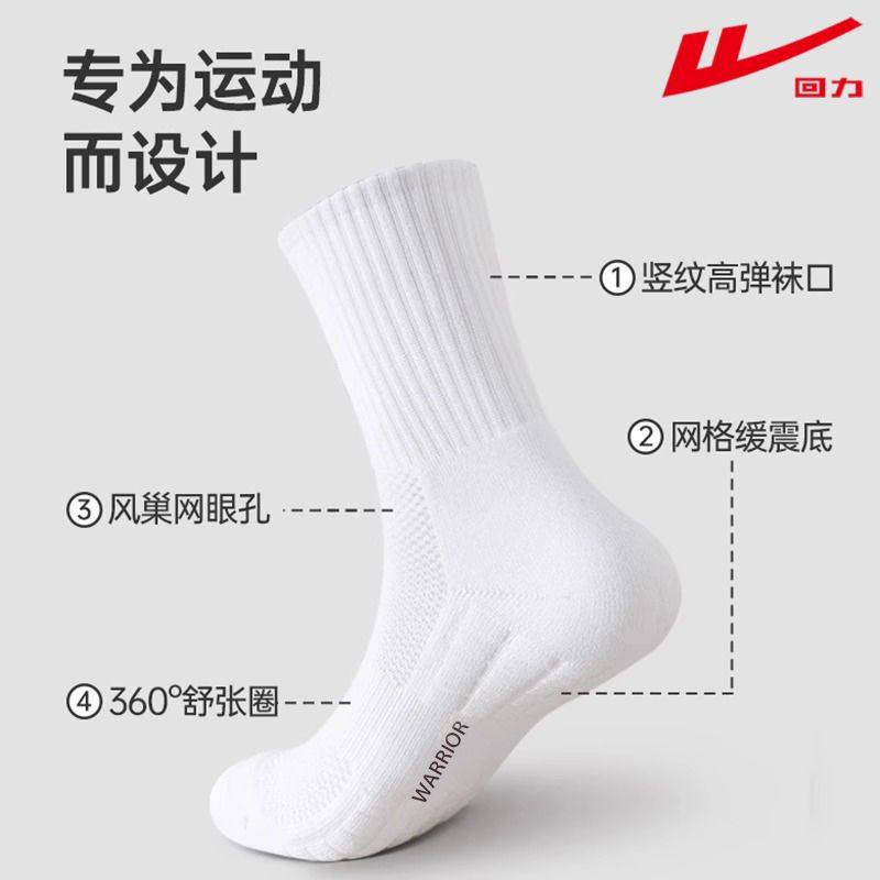 纯色新疆棉毛巾底运动学生抗菌防臭长筒 款 回力男士 跑步袜中筒四季