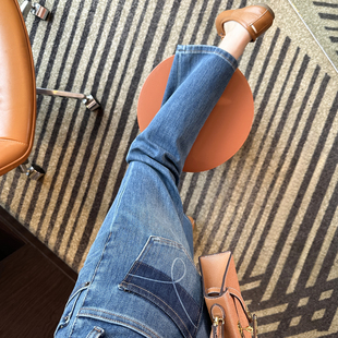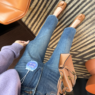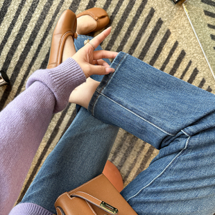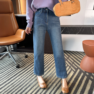 女2025秋新九分直筒阔腿裤 直腿 烟管牛仔裤 四面弹窄版 电线杆裤
