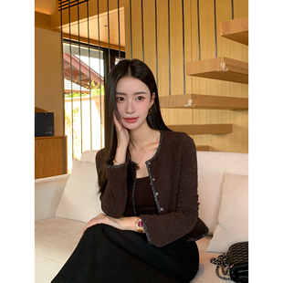 Paris千金 女无袖 法式 小香风针织开衫 吊带上衣 喇叭长袖 pusumede