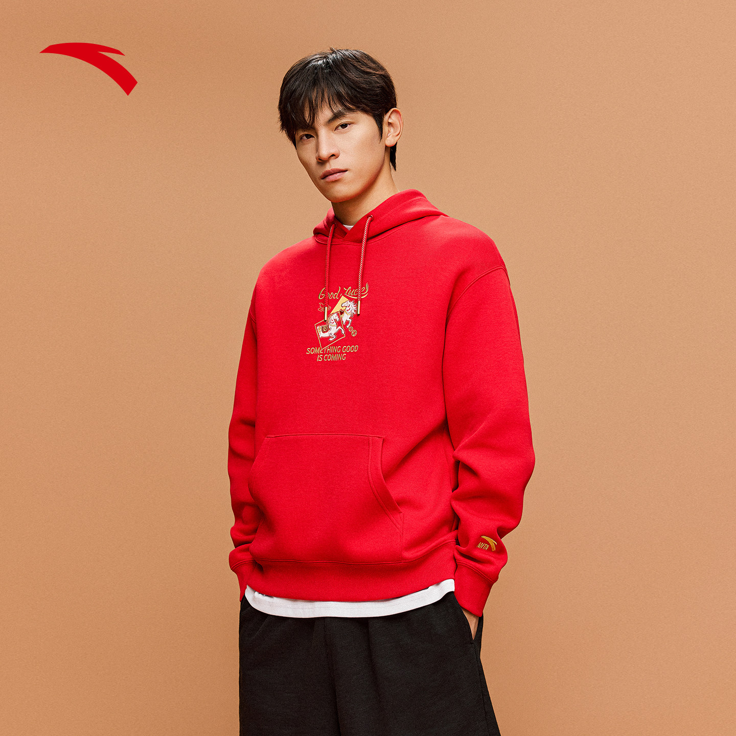 加厚上衣152618707N 休闲长袖 安踏好事发生 加绒连帽卫衣男新年款
