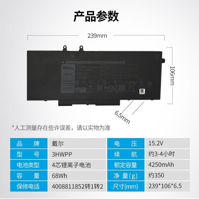 3541 4芯68Wh原装 3550 3HWPP 笔记本电池 3551 戴尔DELLPrecision