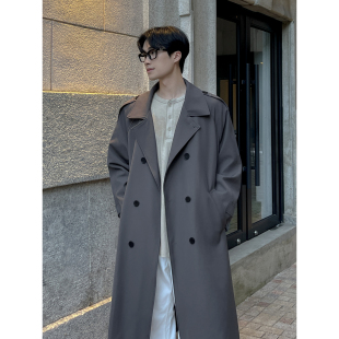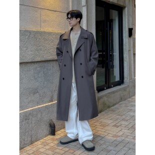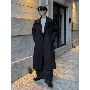 大衣外套男 宽松高级感痞帅大码 秋冬季 翻领双排扣过膝风衣男中长款