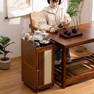 移动茶台小茶桌家用新中式 实木茶车烧水壶一体茶水柜带轮茶几茶具