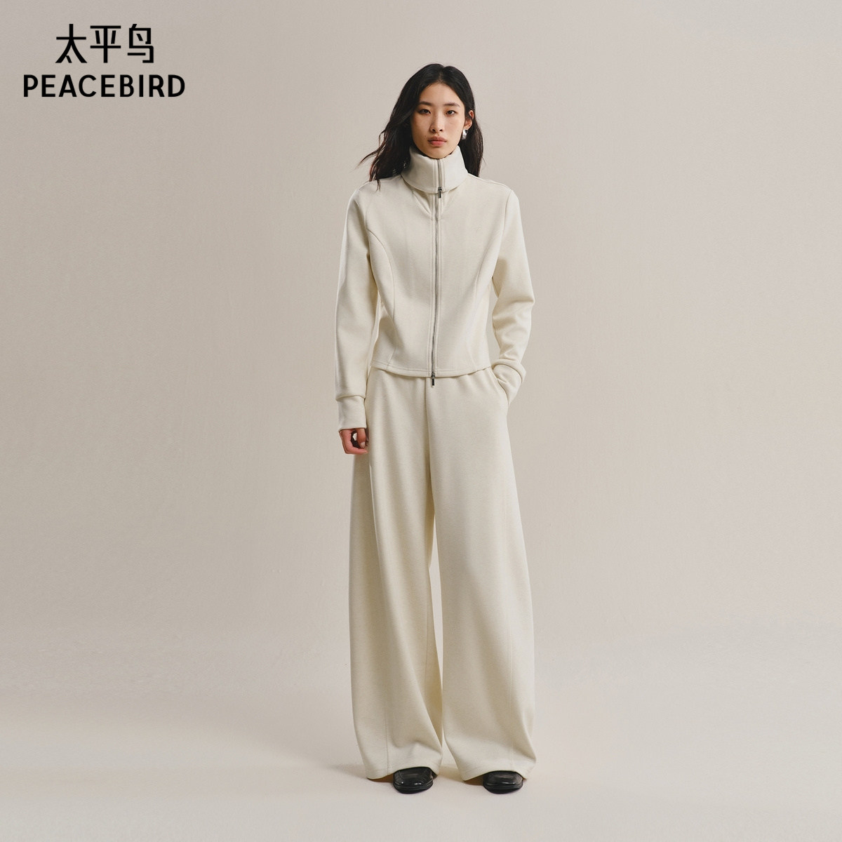 组合A1CPF410 太平鸟25冬新羊毛混纺海军领卫衣长裤 商场同款