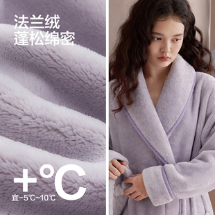 红豆情侣睡袍抗静电珊瑚绒长款 加厚法兰绒家居服浴袍男 睡衣女冬季