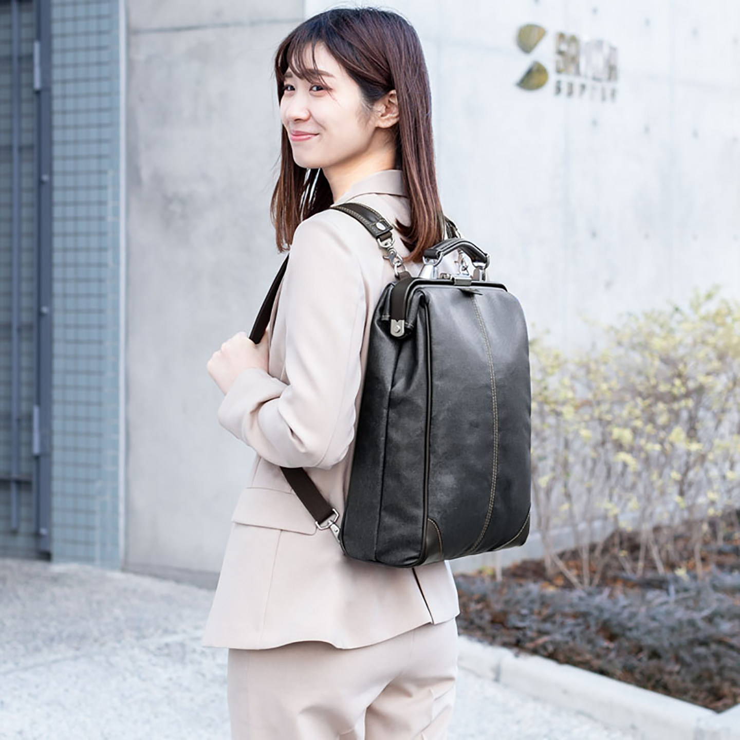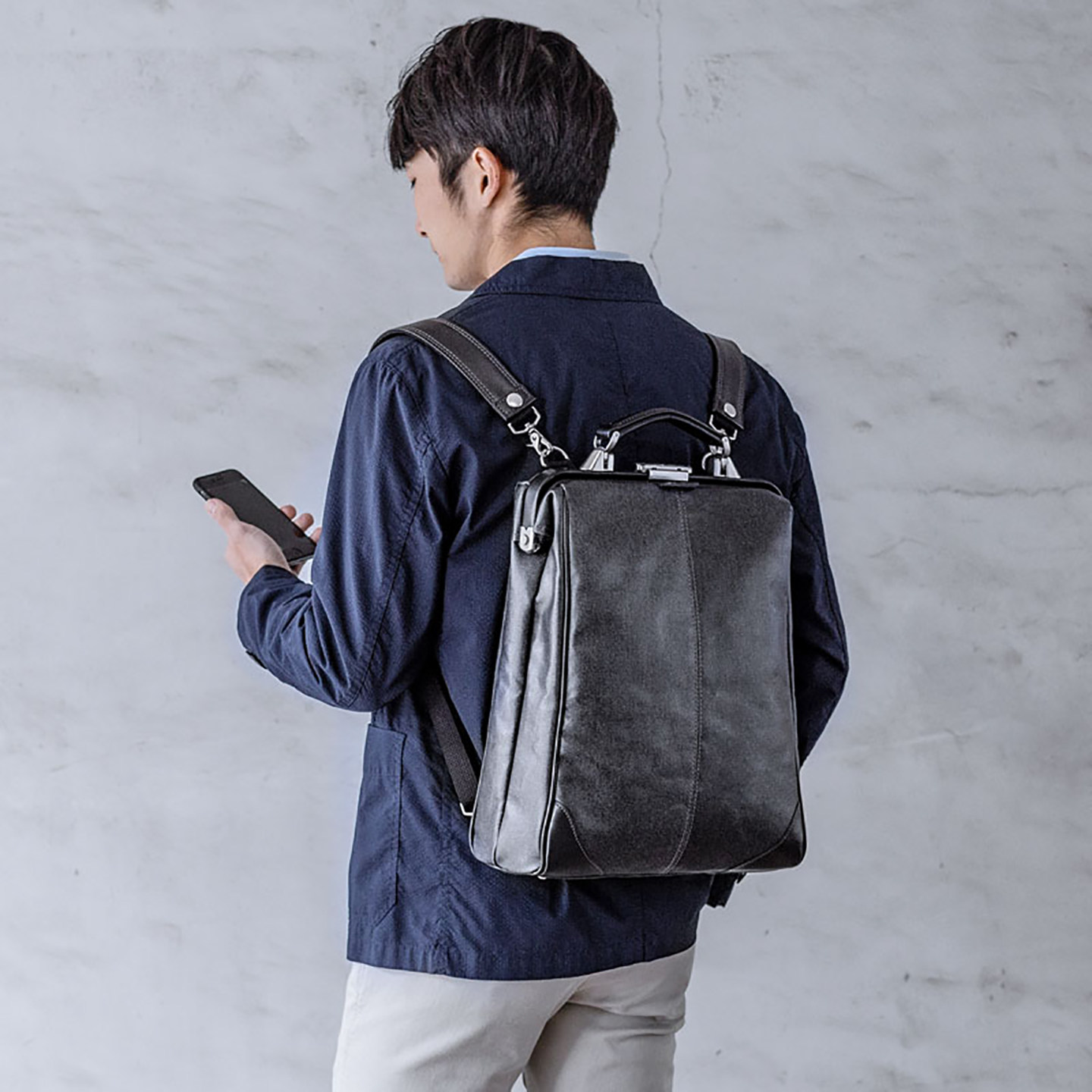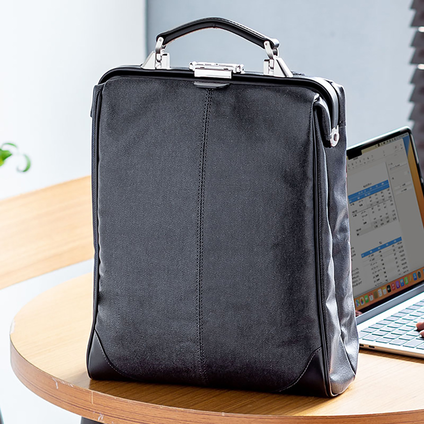 简约轻奢杜勒斯包防水牛仔布牛皮提手 手提包时尚 日本SANWA商务电脑包原装 进口女包背包双肩包小巧公文包男士
