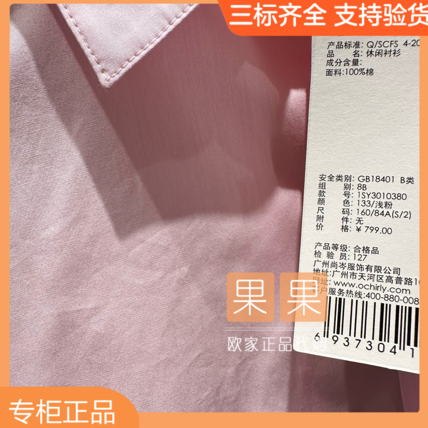 纯棉衬衫 2025秋纯色长袖 休闲百搭内搭 1SY3010380 欧时力专柜正品