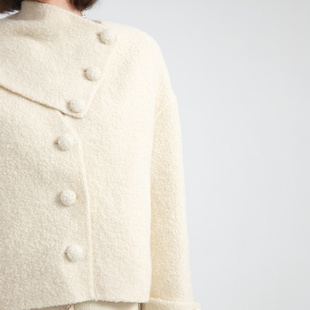 MOISSAC摩萨克2025冬新款 不对称短大衣女 羊毛混纺V领流苏披肩式