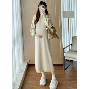Lienni2025秋冬新款 连衣裙女 高腰显瘦时髦艺术麻花毛衣拼接长款
