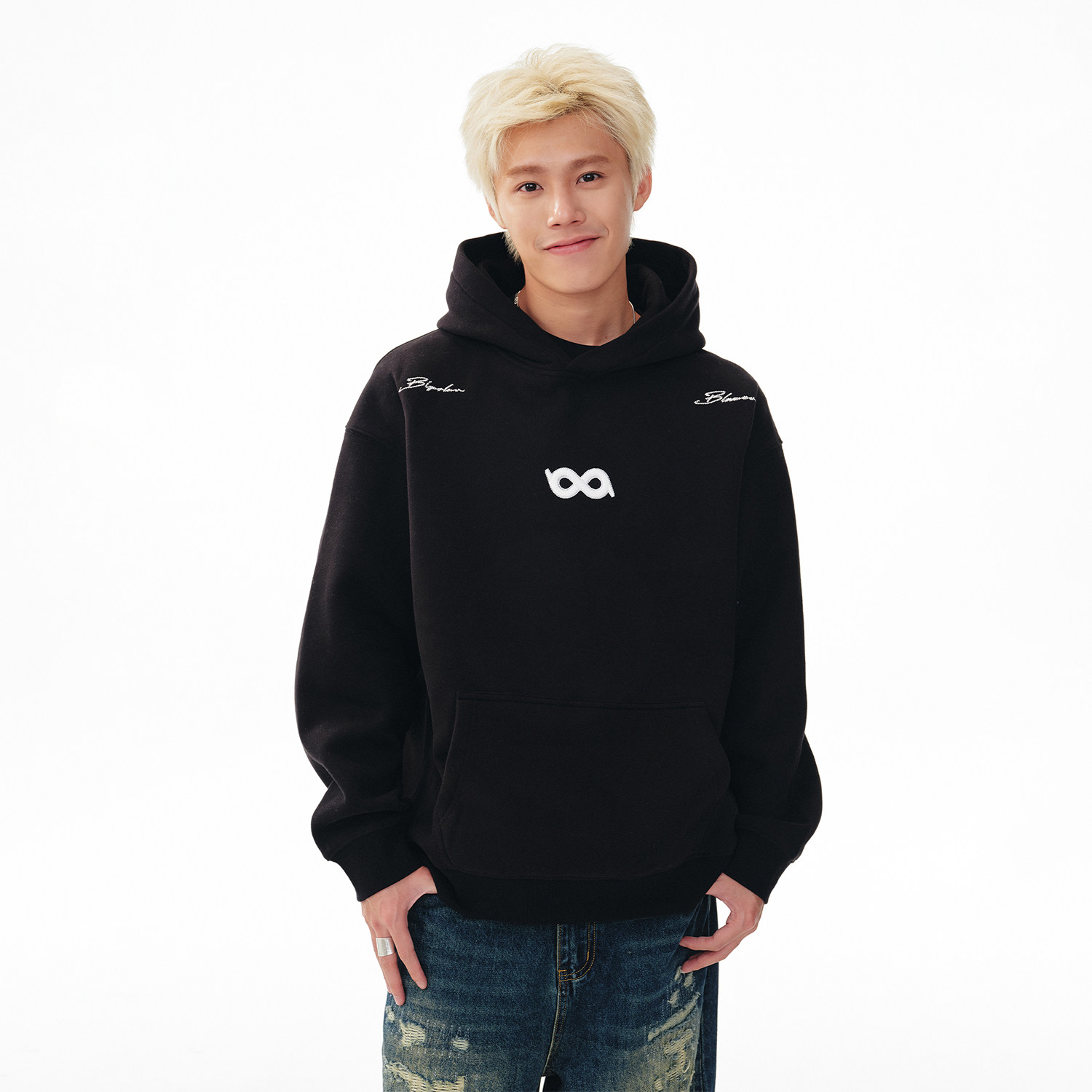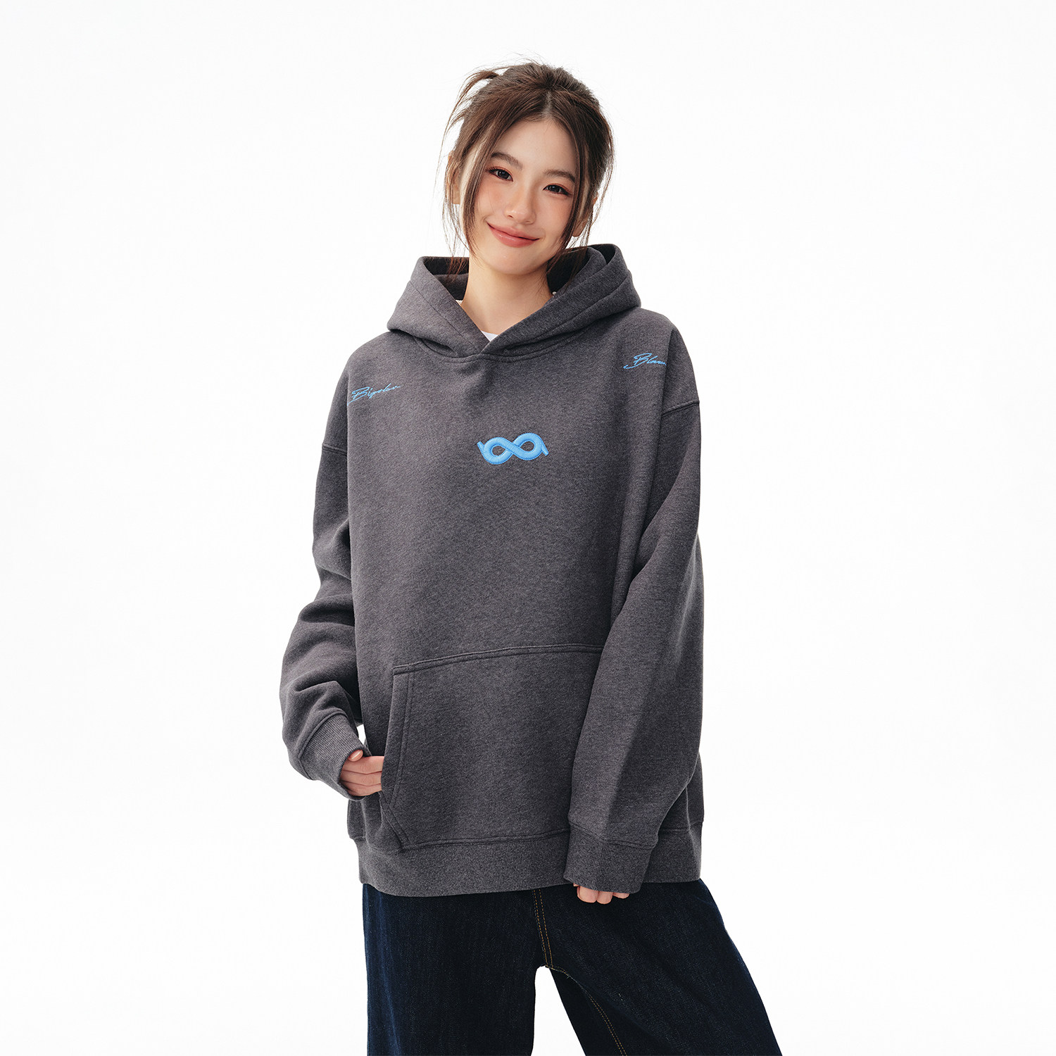 打底帽衫 BIPOLAR立体断开字绣花连帽卫衣美式 休闲圆领秋冬基础款
