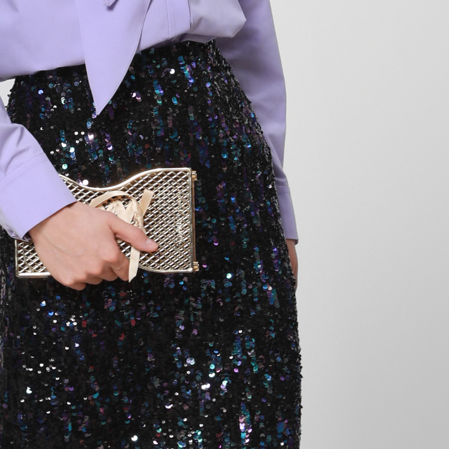 专柜正品 包臀裙女 马天奴2025秋冬新紫色渐变珠片半身裙半裙子修身