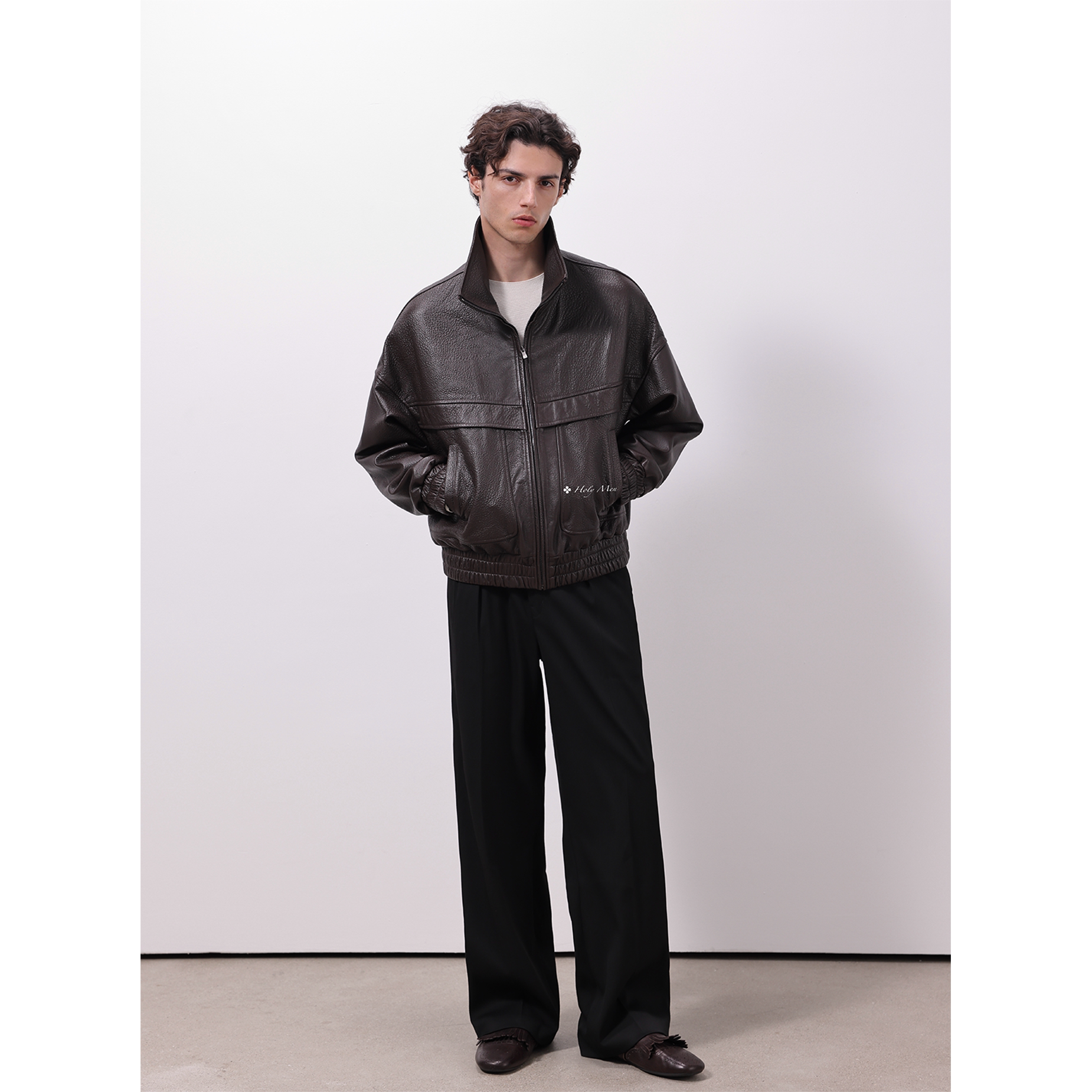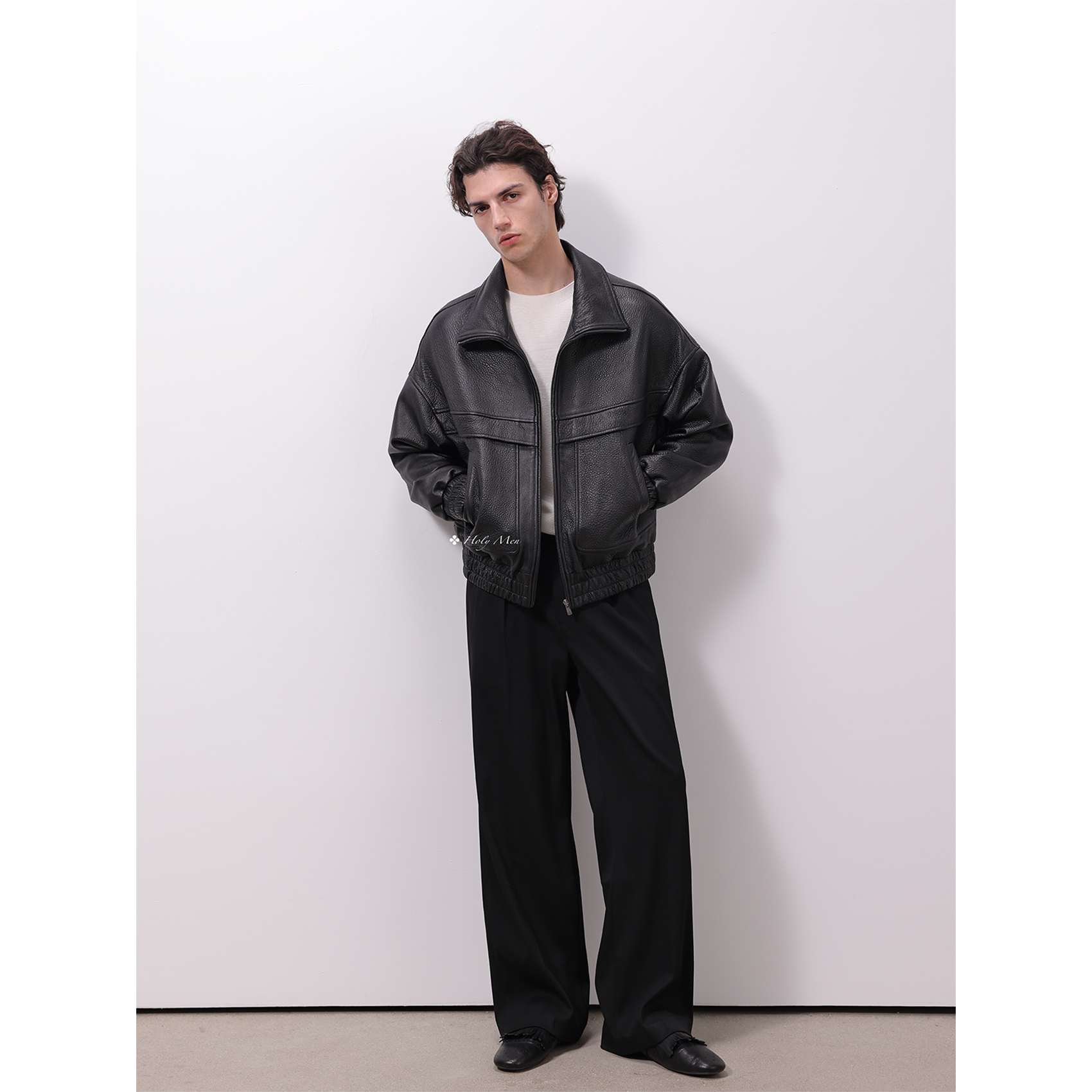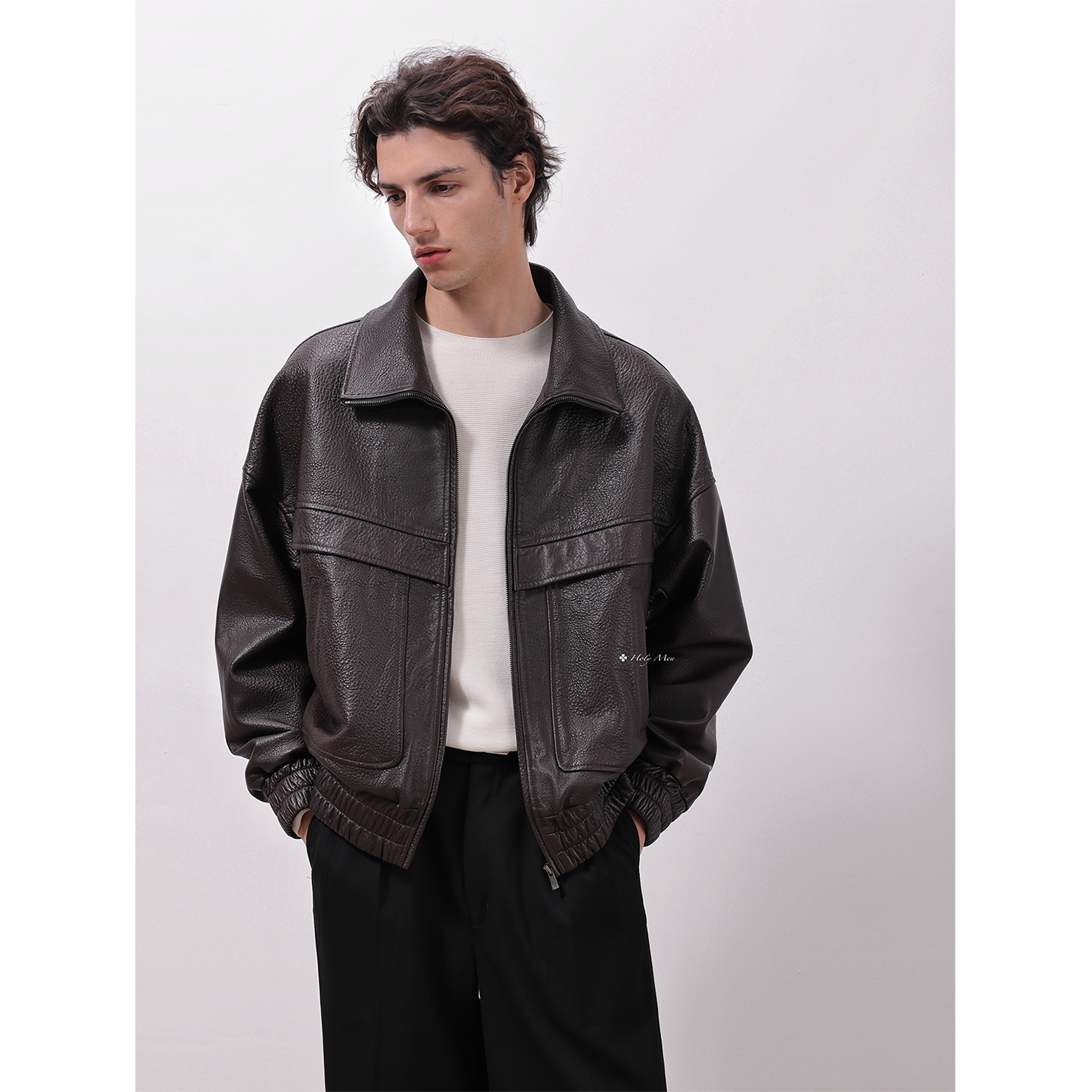 HolyMen 西班牙进口无涂层泡皮重工复古宽松皮衣外套