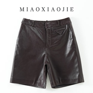 绵羊皮真皮短裤 2025新款 女高腰显瘦五分裤 皮中裤 宽松阔腿裤 时尚
