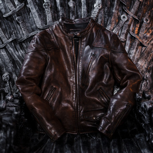 G2204 复古休闲短款 莫臣男装 毒液马皮立领机车皮衣无涂层美式