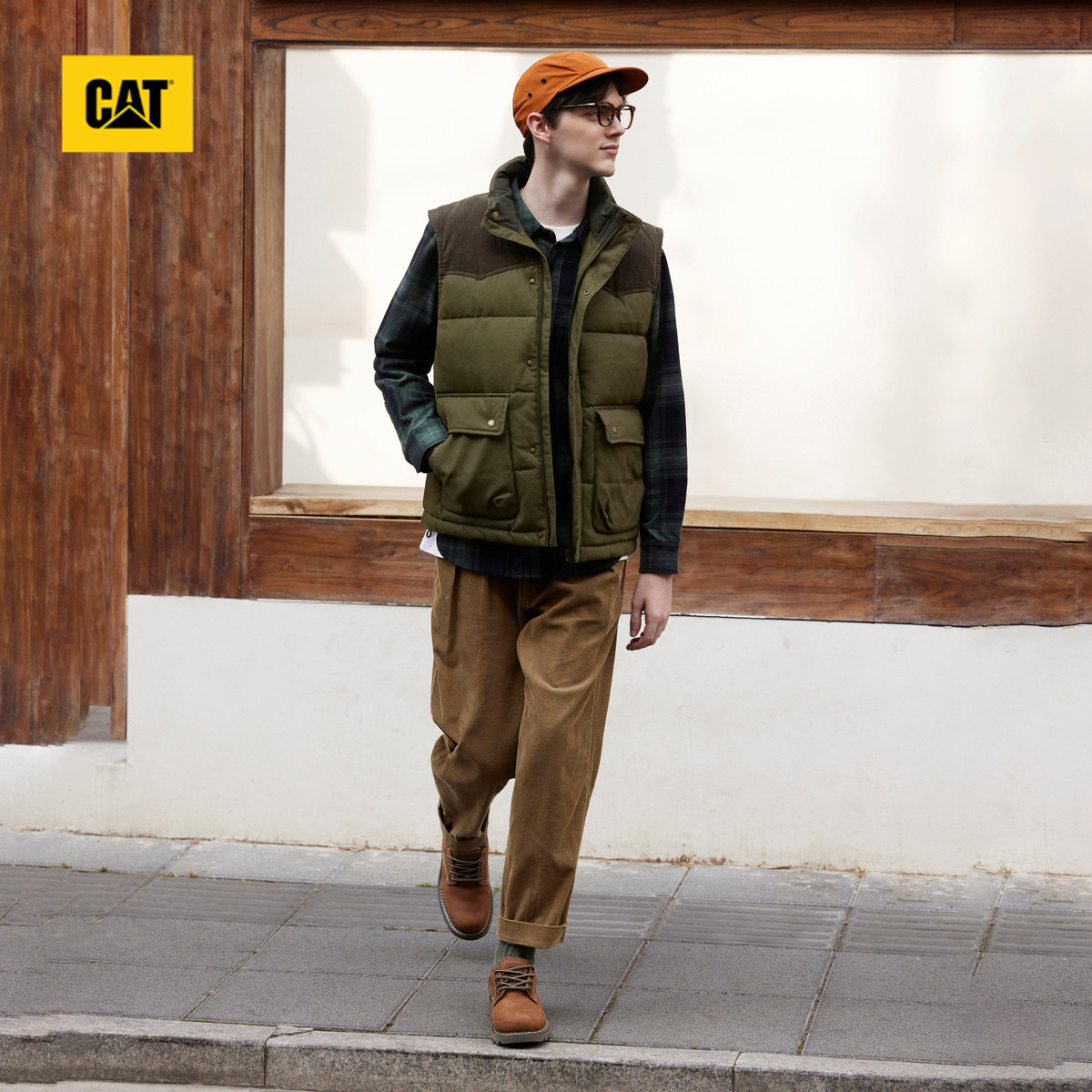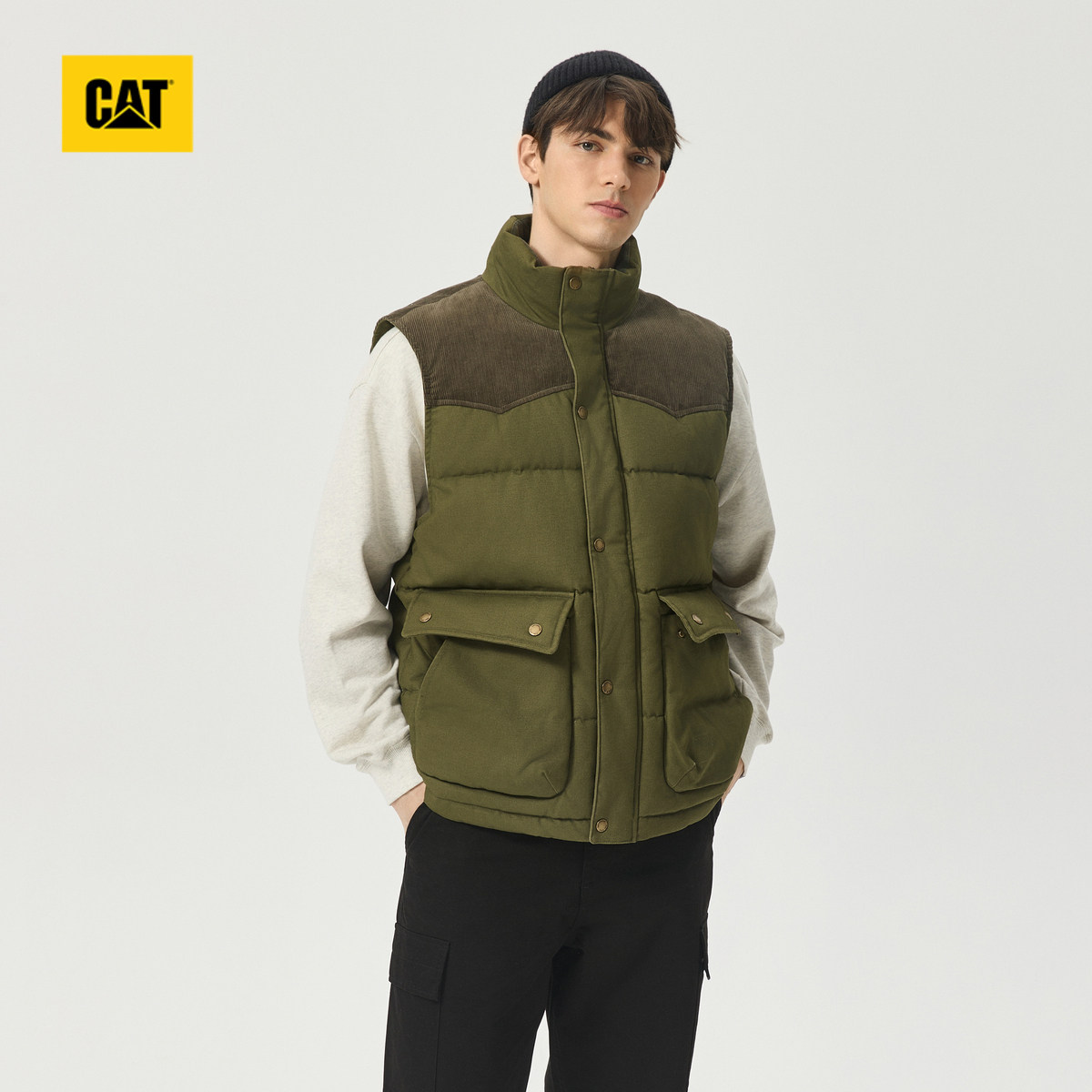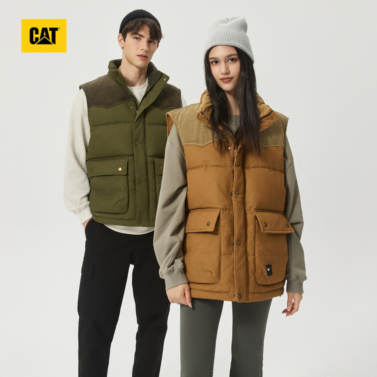 立领棉马夹情侣马甲外套 户外休闲工装 CAT卡特春季 男女同款