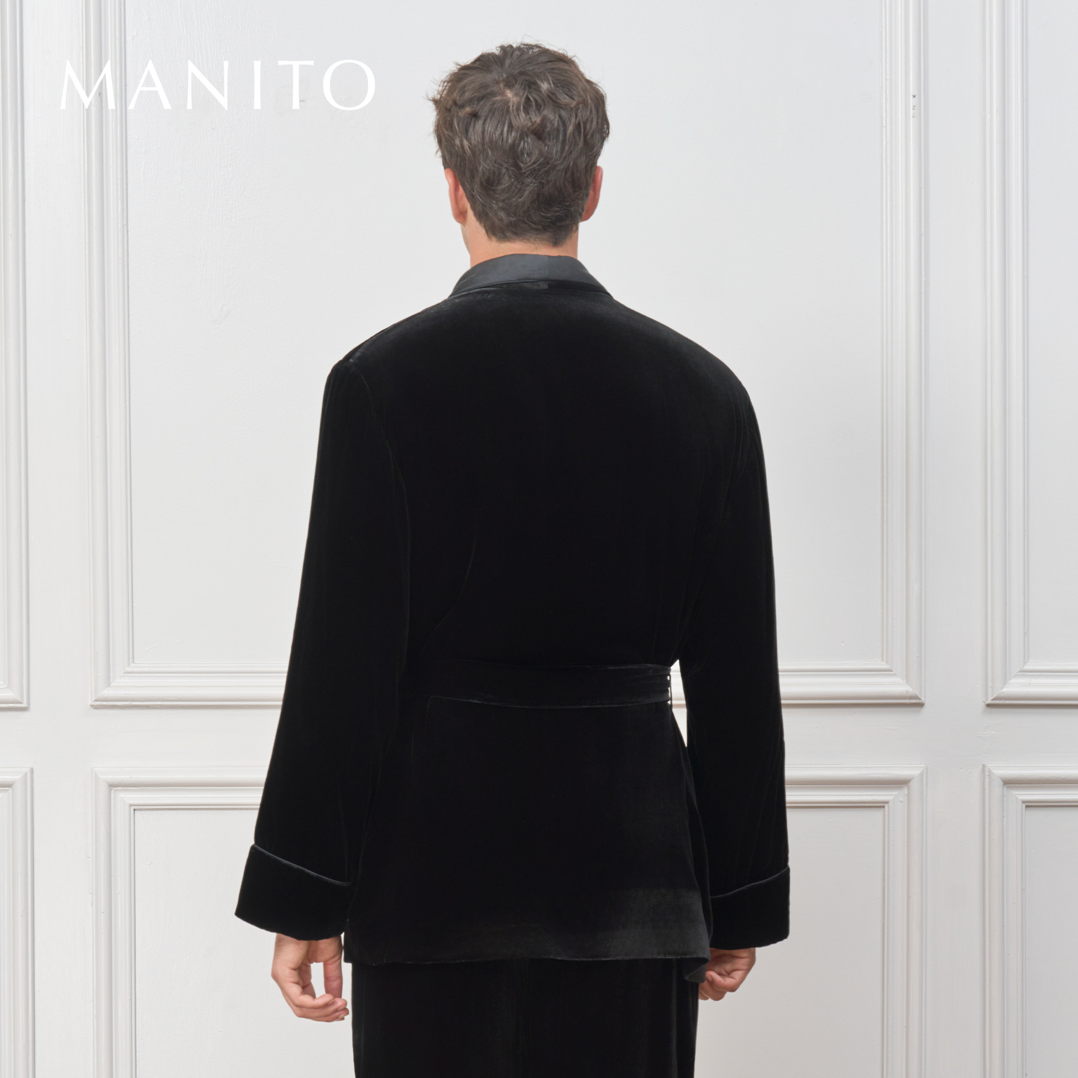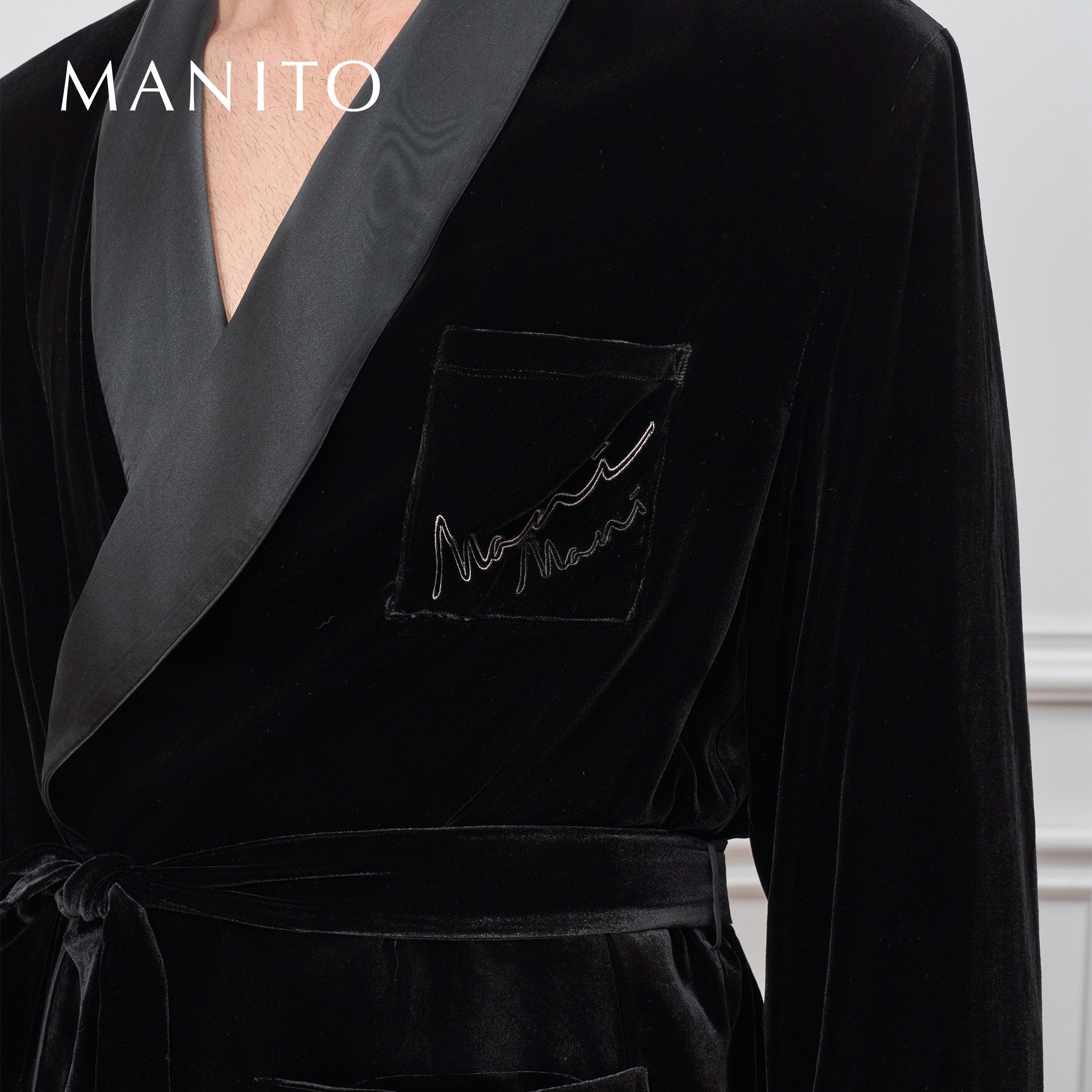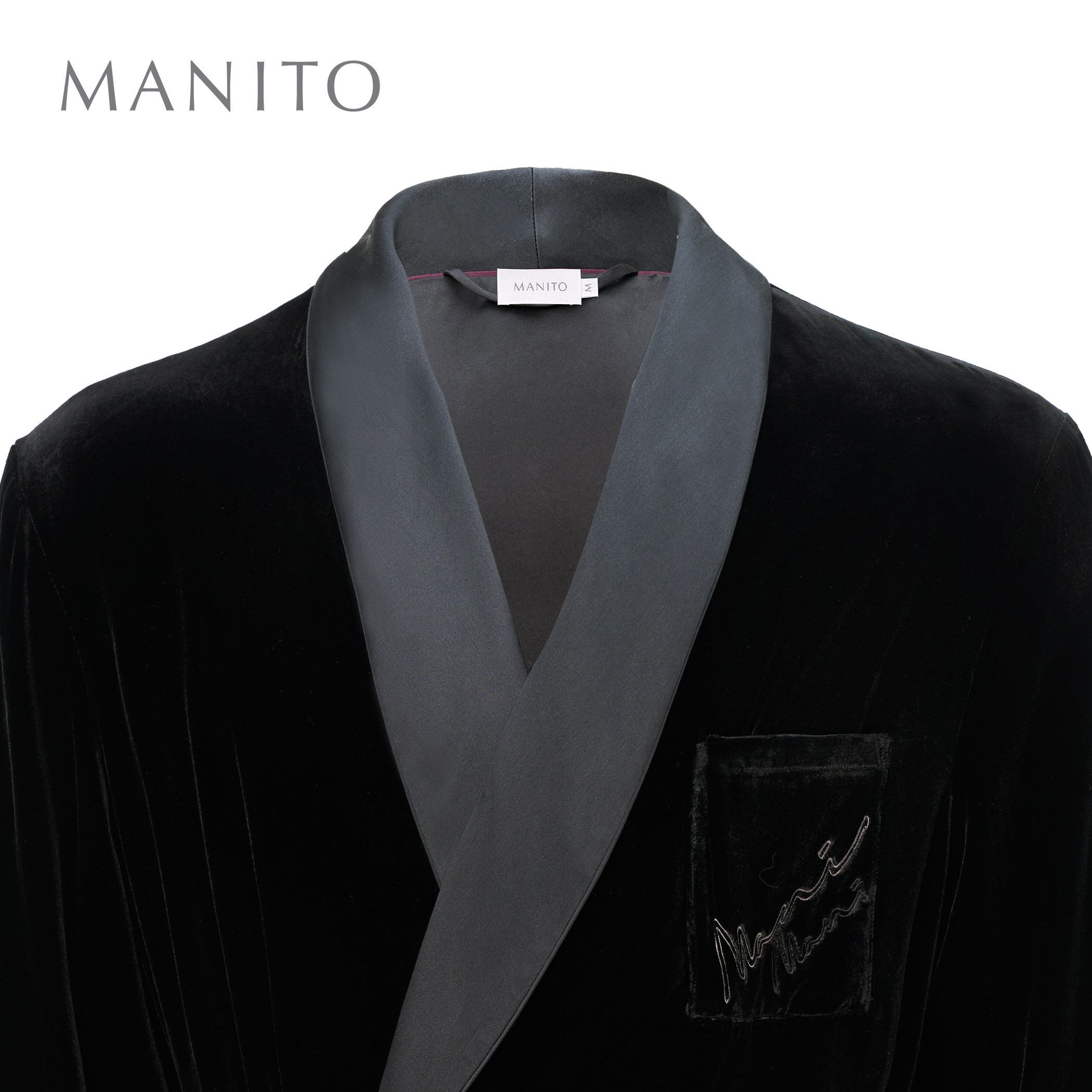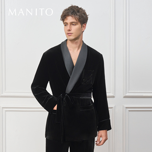 MANITO 短睡袍桑蚕丝家居服保暖短袍 曼尼陀Rome哑光丝绒男士