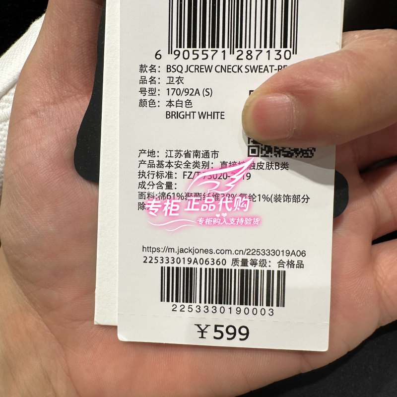6905571287130 A06 杰克琼斯BSQ联名卫衣提花休闲圆领 225333019
