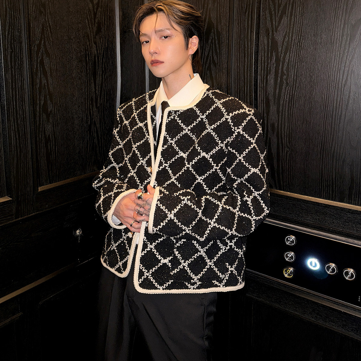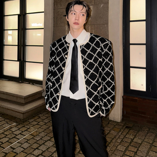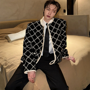 短款 子上男装 高级感菱形格小香风外套男款 秋季 夹克上衣 2025新款